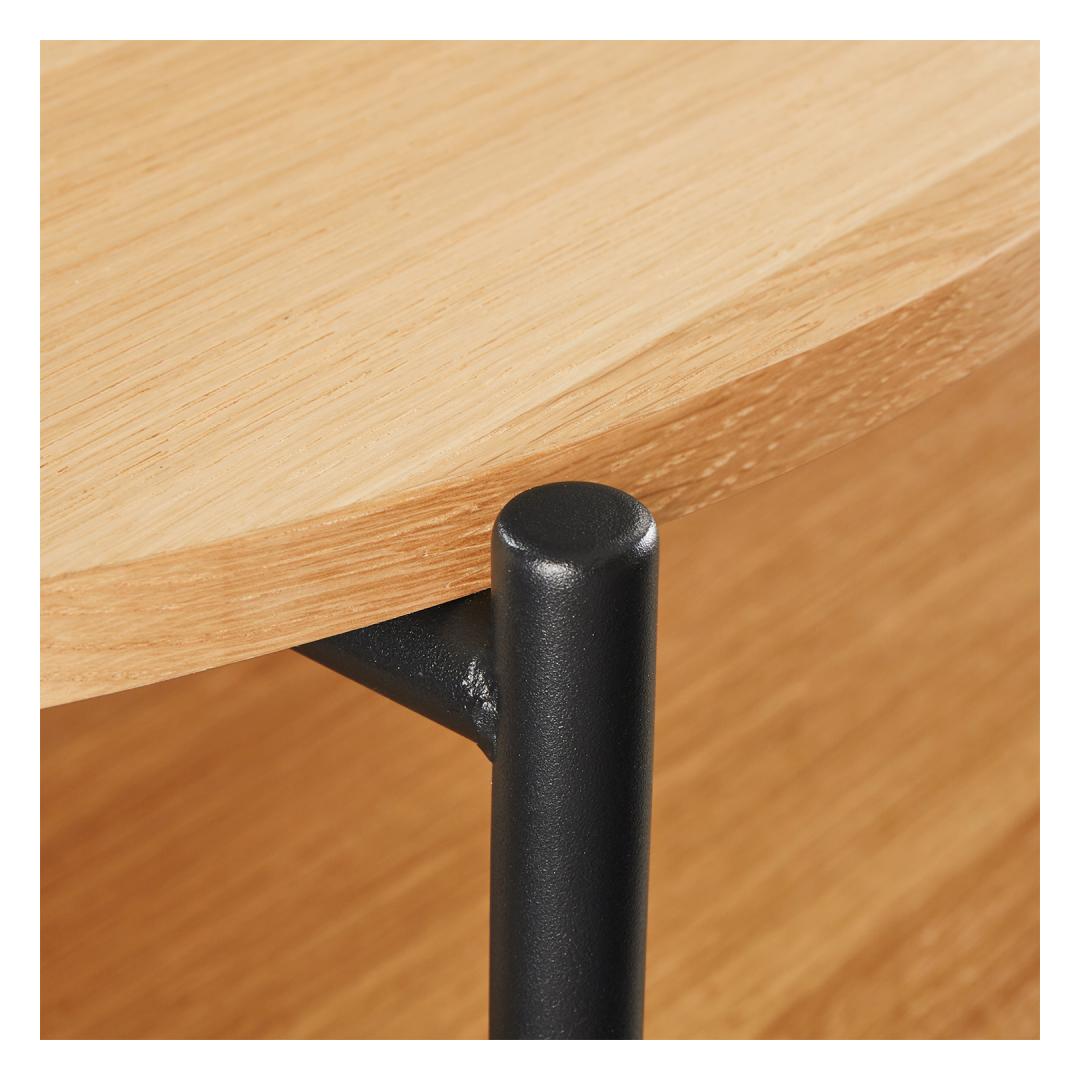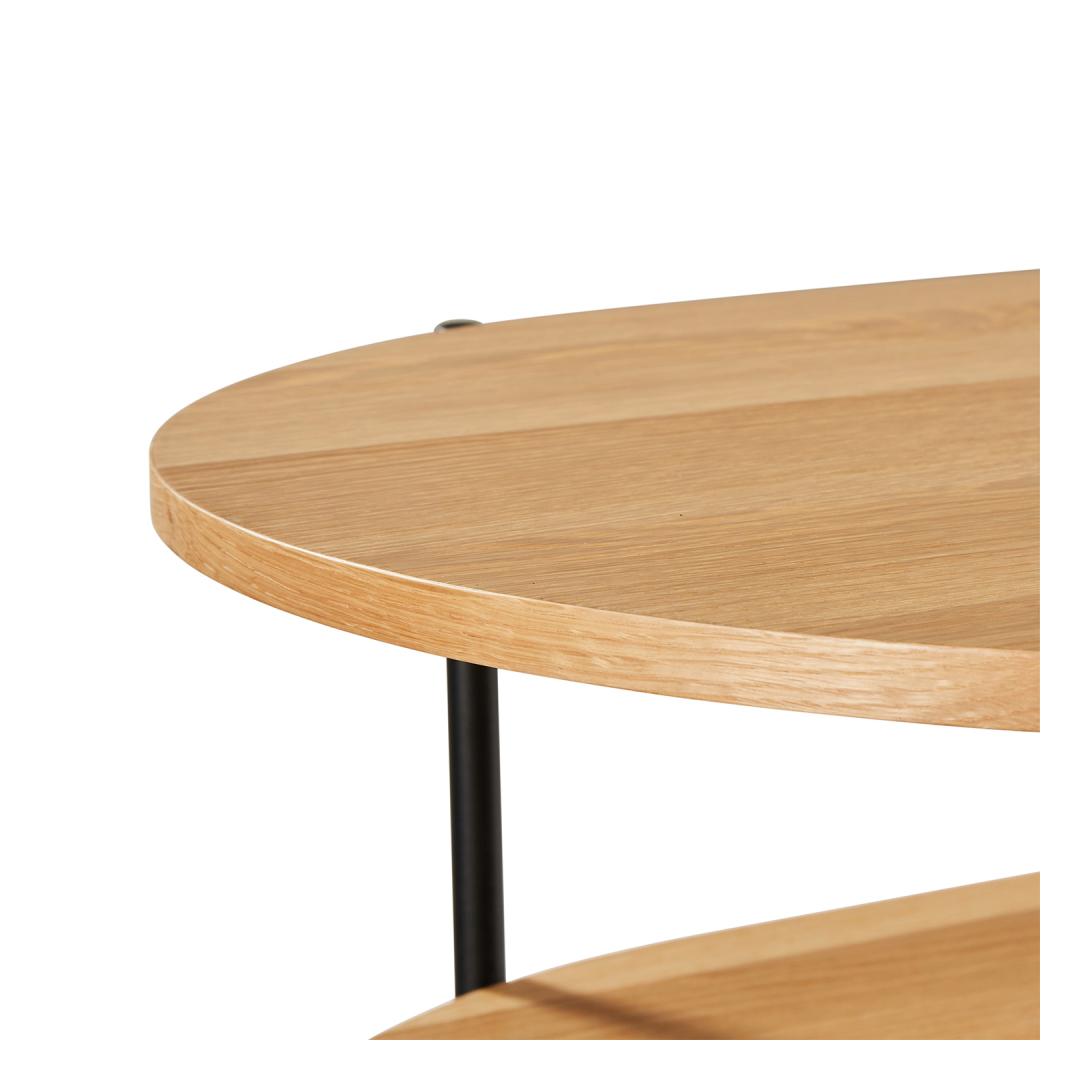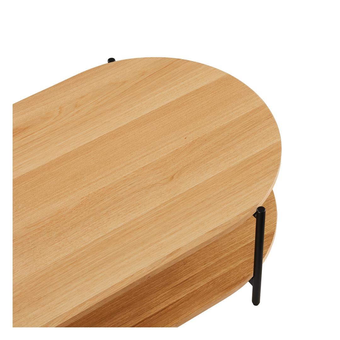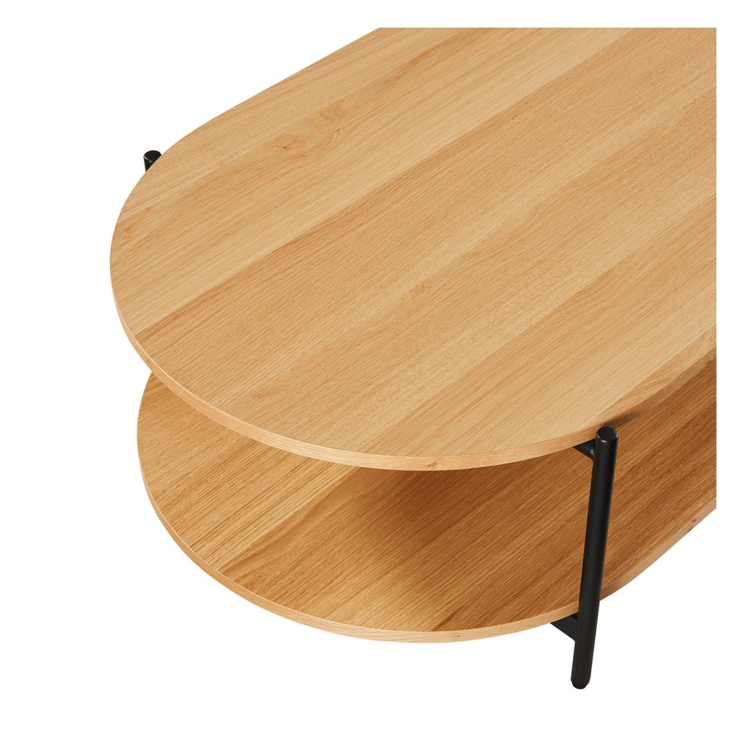 Журнальный столик DAVIA 115x60xH34см, дуб. Столешницы: мебельный щит с натуральным шпоном дуба. Металлические ножки стола окрашены порошковой краской черного цвета. Diivanilaud DAVIA 115x60xH34cm, tamm. Lauaplaadid: mööbliplaat naturaalse tammespooniga. Metallist lauajalad on viimistletud musta pulbervärviga.