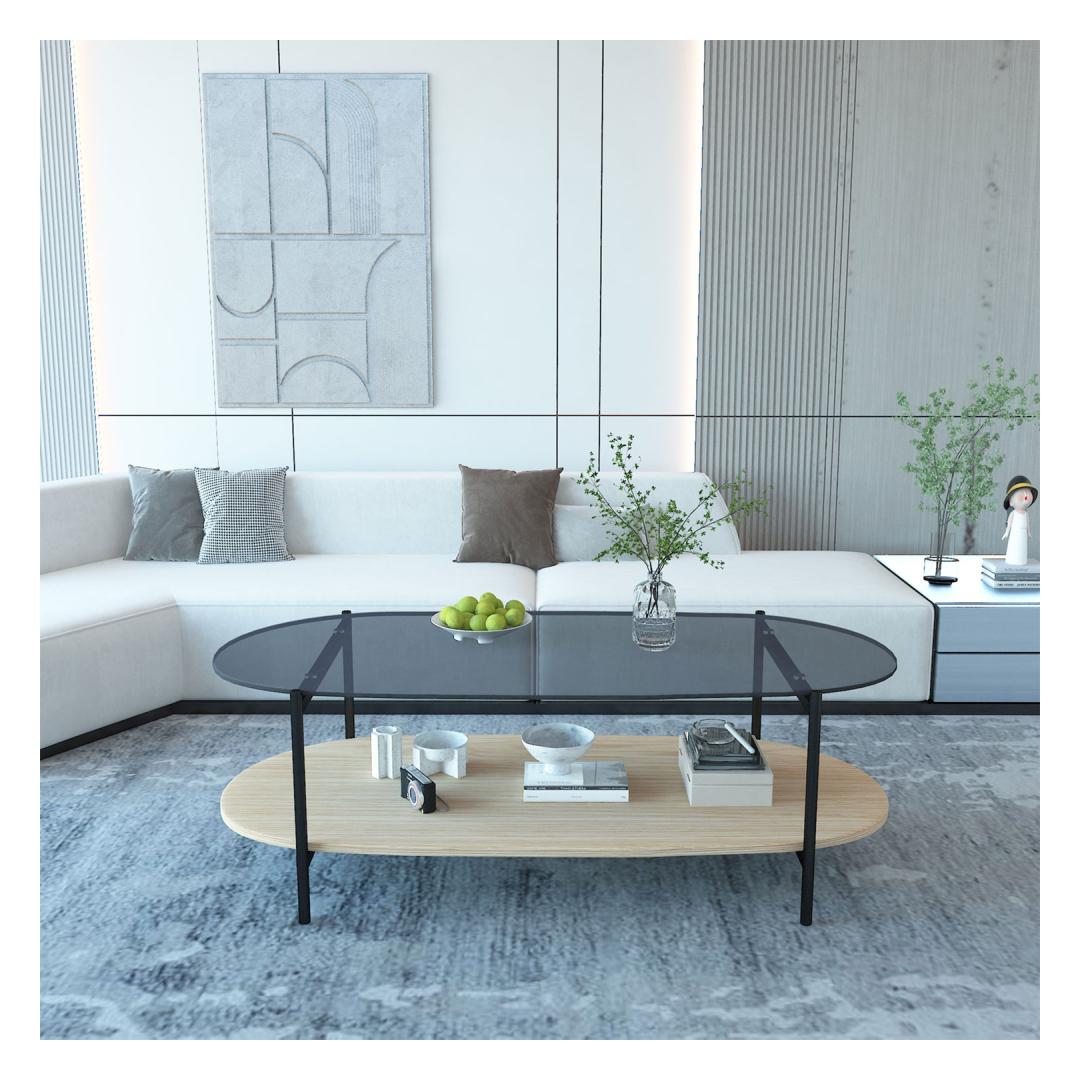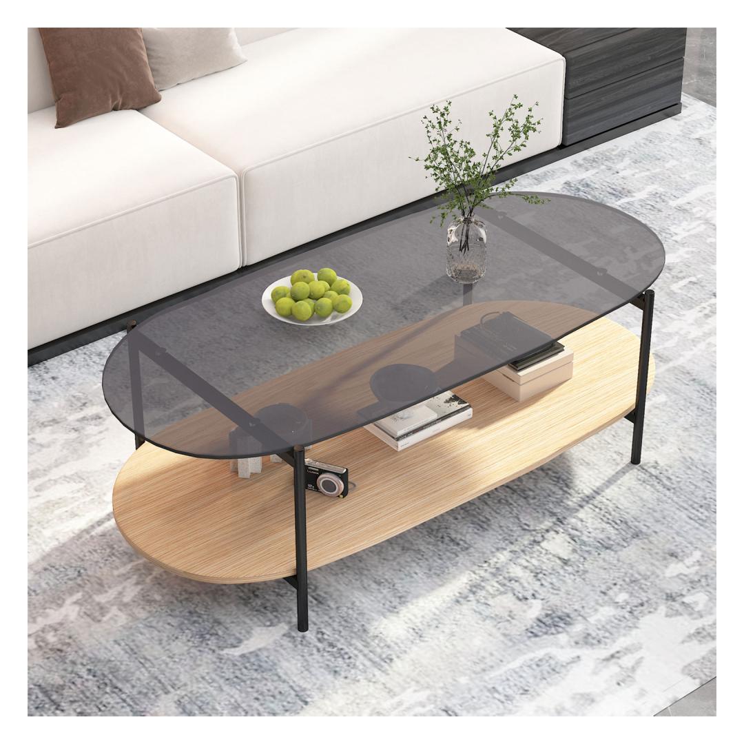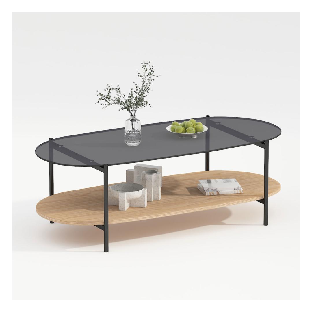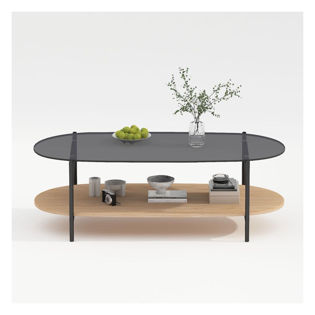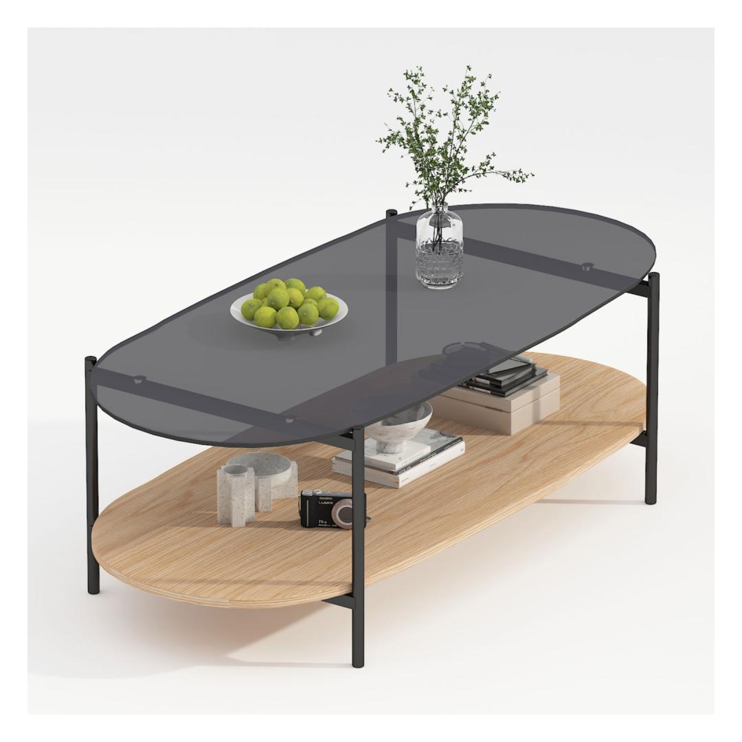 Журнальный столик CINDY 120x55xH40см, серое стекло/дуб меламин