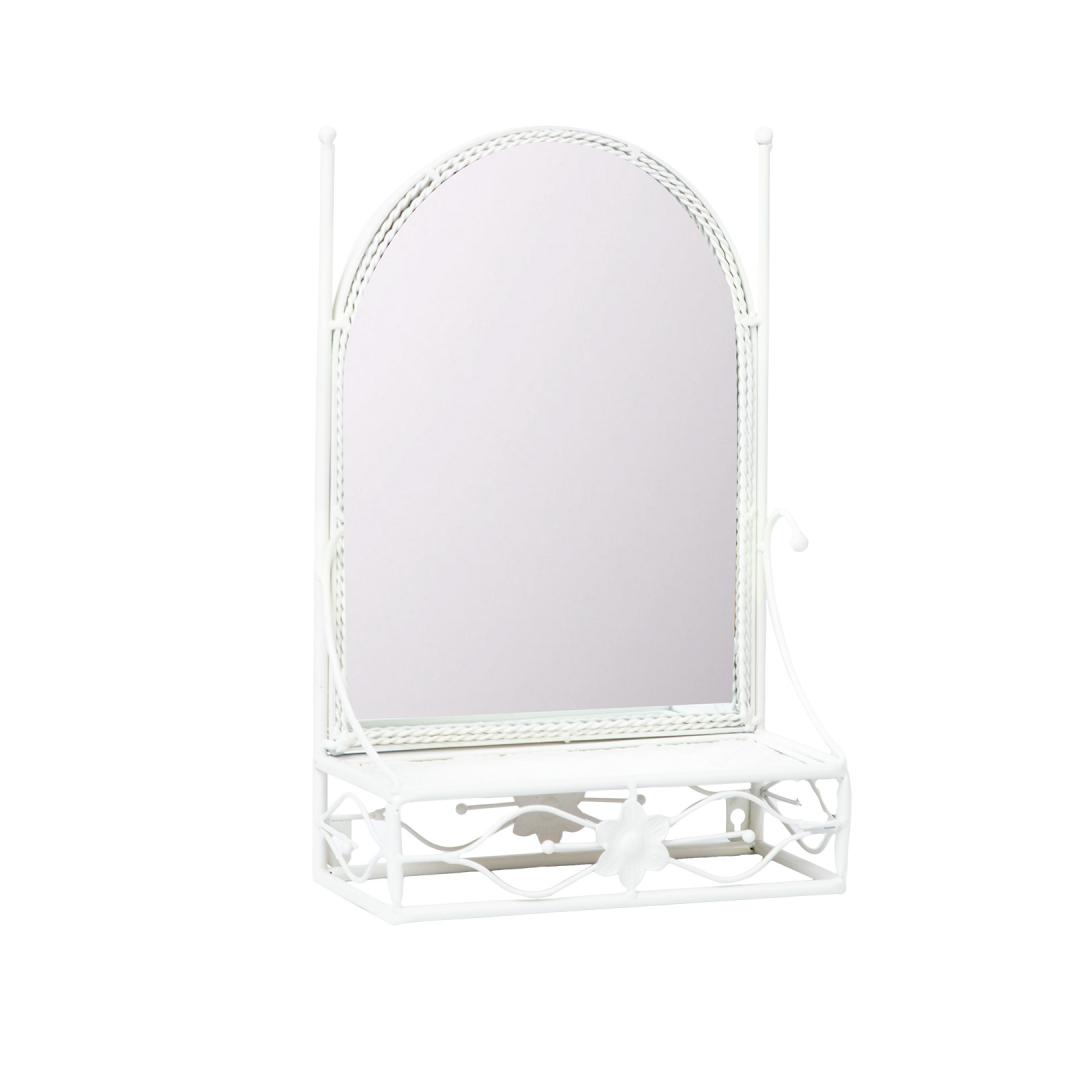 Зеркало SANDY с полкой и стойкой 28x13xH43см, металлическая рама антик-белый. Peegel SANDY riiuli ja nagiga 28x13xH43cm, antiikvalge metallraam.