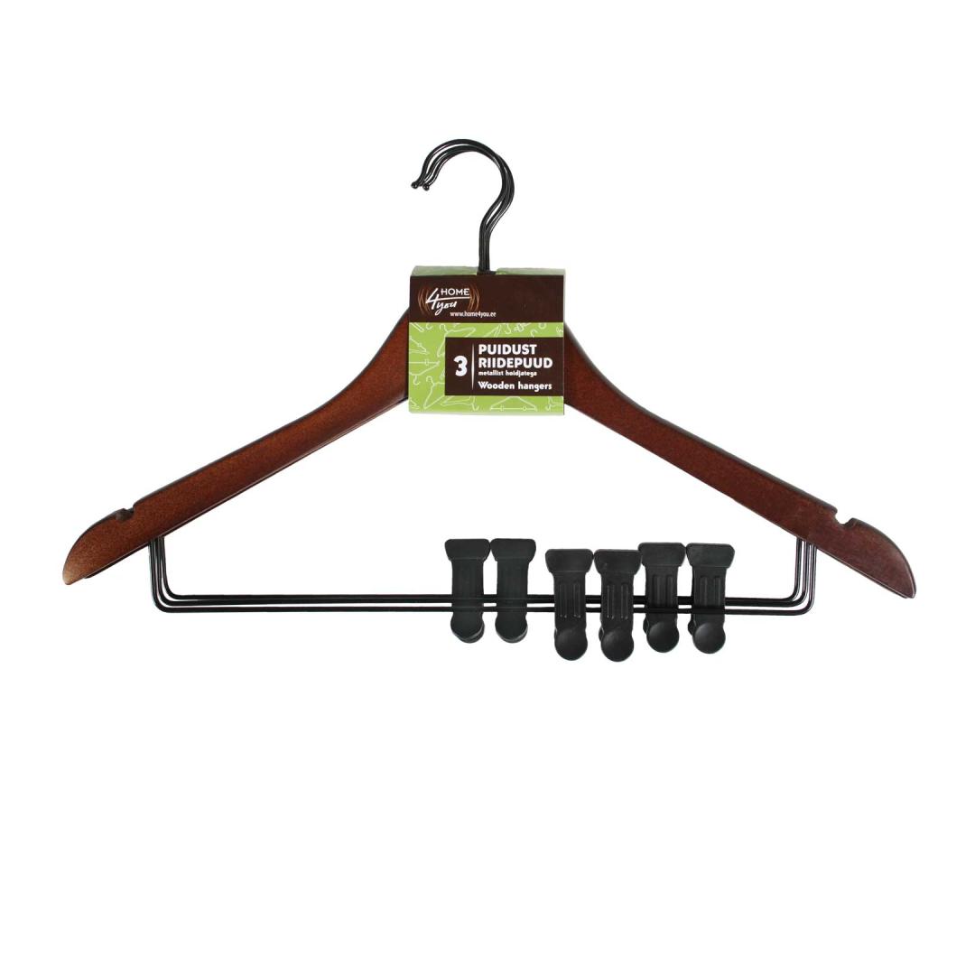 Вешалки 3шт/комплекте, с зажимами, коричневые
