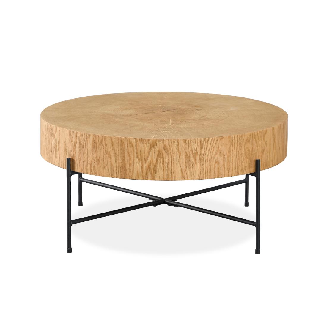 Журнальный столик CASTINO D75xH36см, дуб. Эффектный стол, напоминающий связку дров, – настоящий шедевр. На столешнице отражается весь срок жизни достойного дуба годичными кольцами, небольшими трещинками и сучками. Для обеспечения устойчивости столешница изготовлена из плиты МДФ с наклеенным на нее красивым слоем шпона толщиной 6 мм. Деревянная поверхность покрыта масляным воском. Черная стальная ножка стола покрыта эмалью. Для изготовления изделия используется сертифицированная FSC древесина. Diivanilaud CASTINO D75xH36cm, tamm. Efektne, puidupakku meenutav laud on tõeline meistriteos. Lauplaadil kajastub väärika tamme terve elukaar aastaringide, väikeste pragude ja säsikaartega. Stabiilsuse tagamiseks on lauaplaat valmistatud MDF plaadist, millele on liimitud kaunis 6mm spooni kiht. Puidupind on viimistletud õlivahaga. Laua must terasest jalg on emailviimistlusega. Toote valmistamiseks on kasutatud FSC sertifikaadiga puitmaterjali.