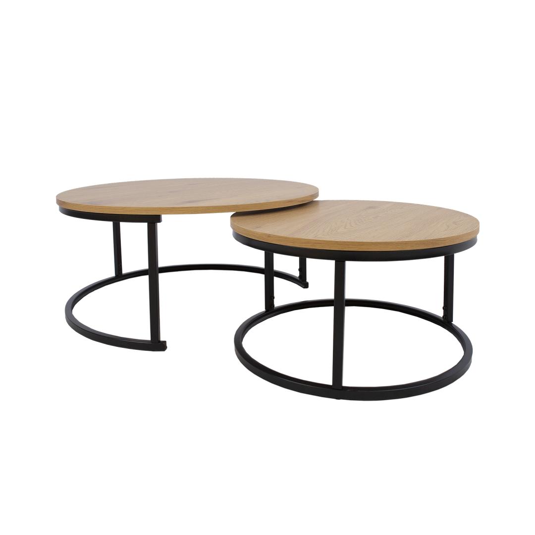 Журнальный столик BRITU в наборе 2 шт., светлое дерево. Столешница имеет декор из светлого дерева и изготовлена из плиты МДФ толщиной 18 мм. Каркас и ножки стола изготовлены из металла и покрыты черной порошковой краской. Размеры столов: Д80хВ35см, Д60хВ32см. Набор журнальных столиков BRITU 2шт, светлое дерево. Столешница: 18мм МДФ с декором из светлого дерева. Ножки из металла, покрытого черной порошковой краской. Размеры столов D80xH35см, D60xH32см.