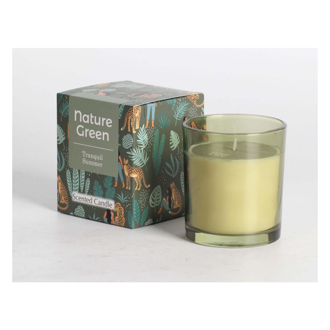 Ароматическая свеча в стакане NATURE GREEN H9,5см, Tranquil Summer