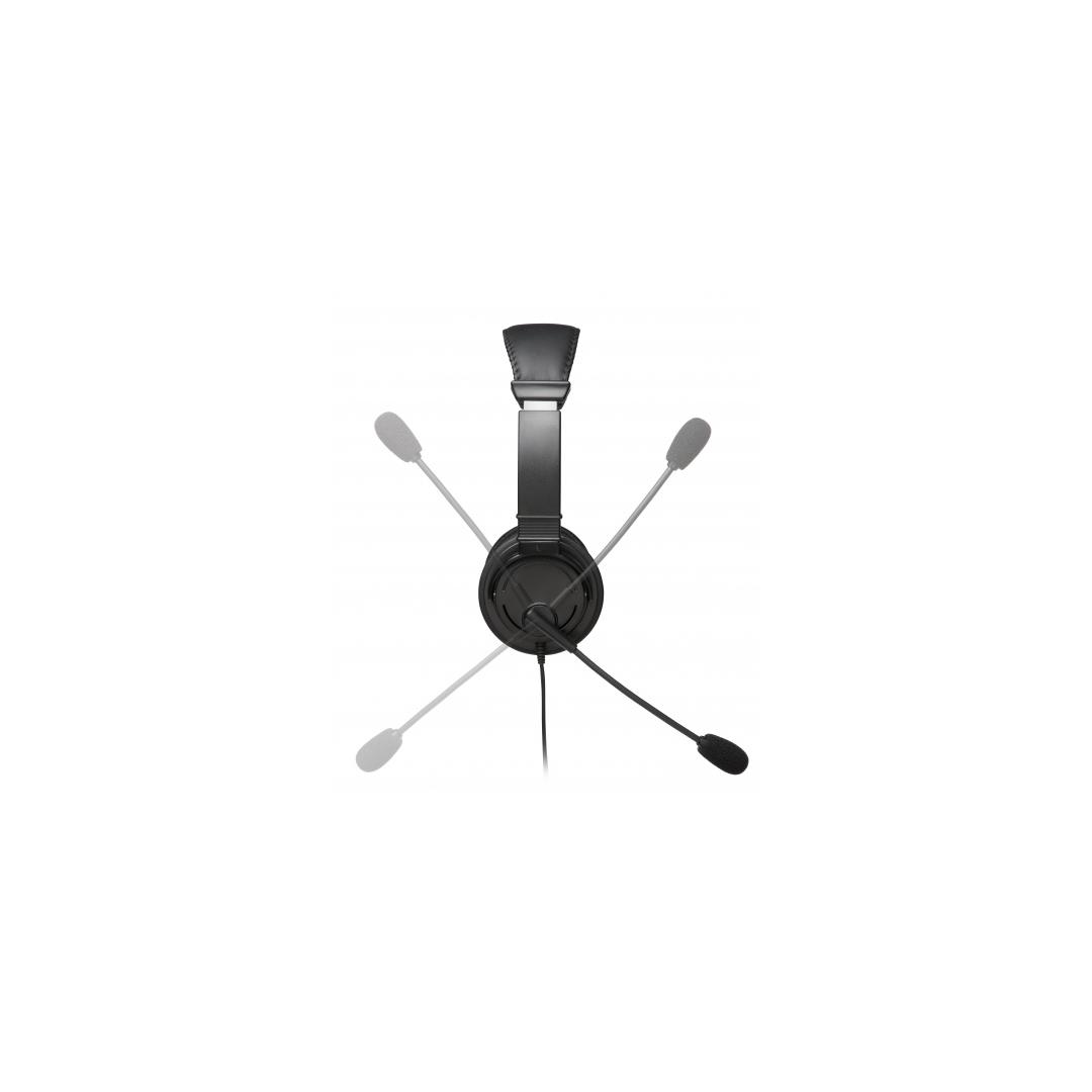 Flexible boom-style microphone can be rotated up to 270 degrees and the foam ear pads are wrapped in a soft leatherette cover.