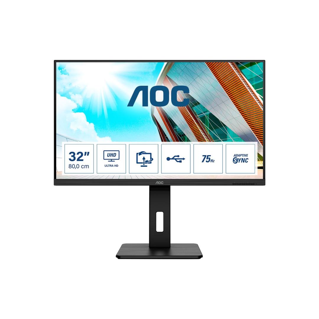 AOC U32P2 31,5 дюйма VA WLED UHD 3840x2160 16:9 3000:1 350 кд/м2 178/178 75 Гц 4 мс 2xHDMI 2.0 3 Втx2 100x100 Черный AOC U32P2 31.5inch VA WLED UHD 3840x2160 16:9 3000:1 350cd/m2 178/178 75Hz 4ms 2xHDMI 2.0 3Wx2 100x100 Black