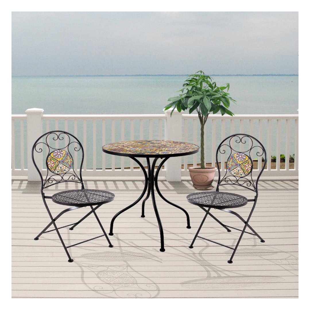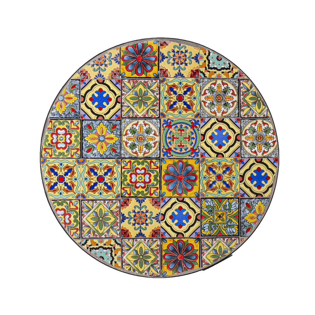 Стол МАРОККО Г60хВ71см. Мозаичная плитка стола покрыта цветной керамической плиткой в марокканском стиле. Ножки и каркас стола изготовлены из металла и окрашены порошковой краской черного цвета. Стол MOROCCO D60xH71см. Стол имеет мозаичную столешницу с цветными мотивами. Каркас выполнен из металла черного цвета.