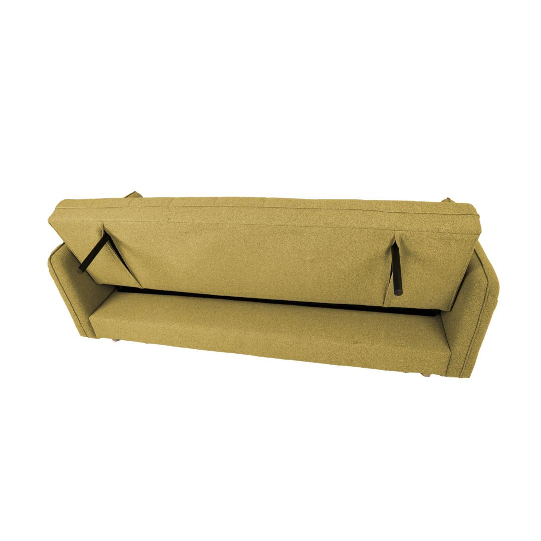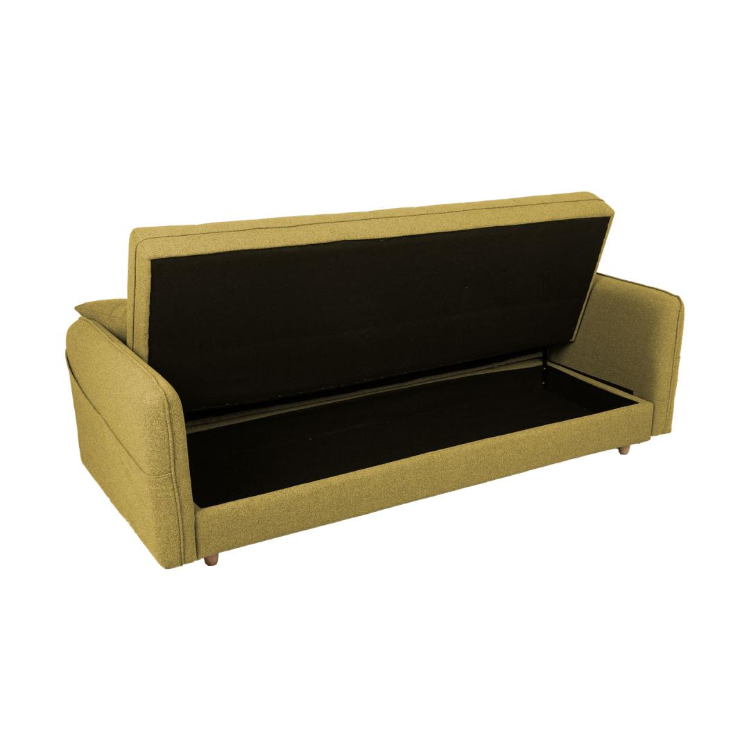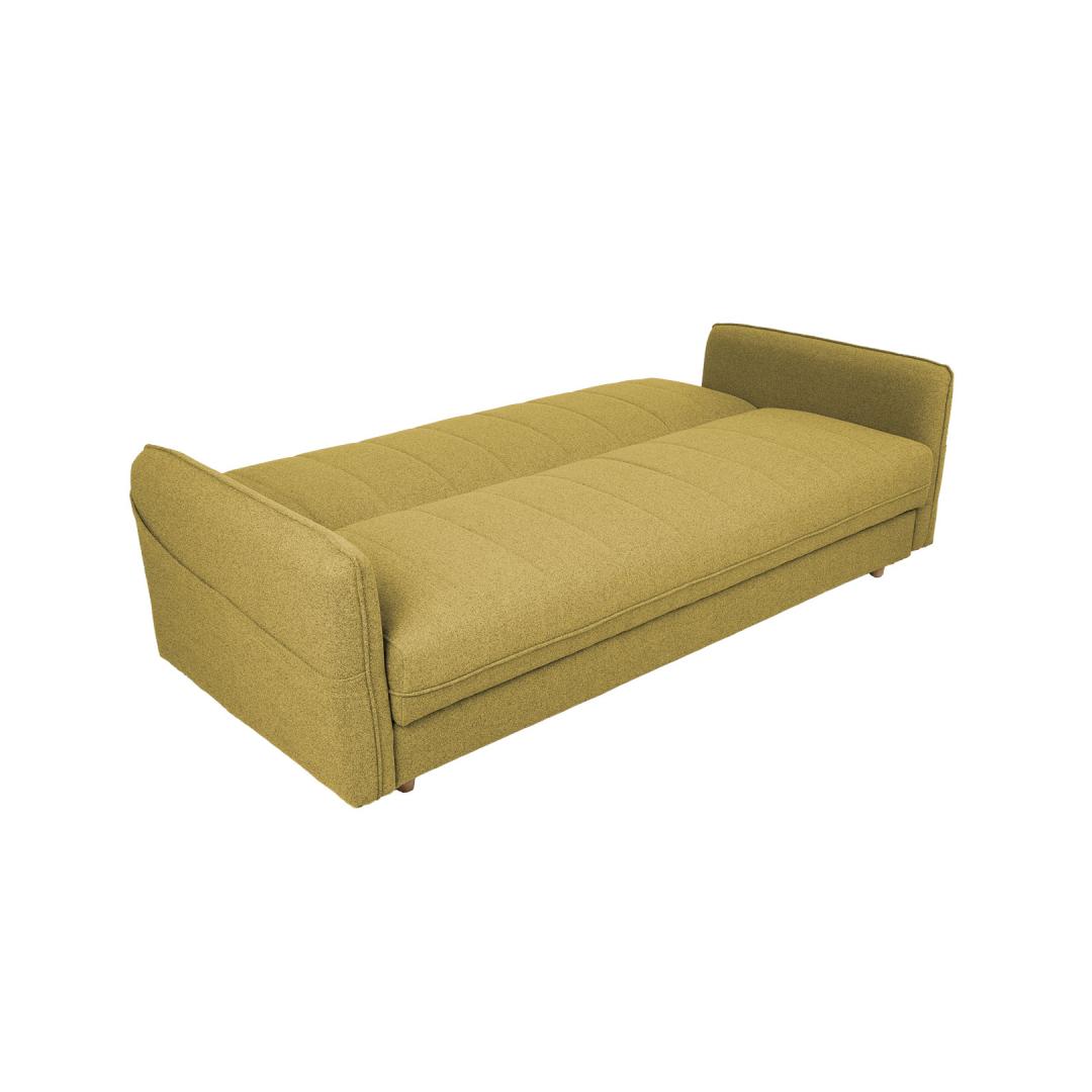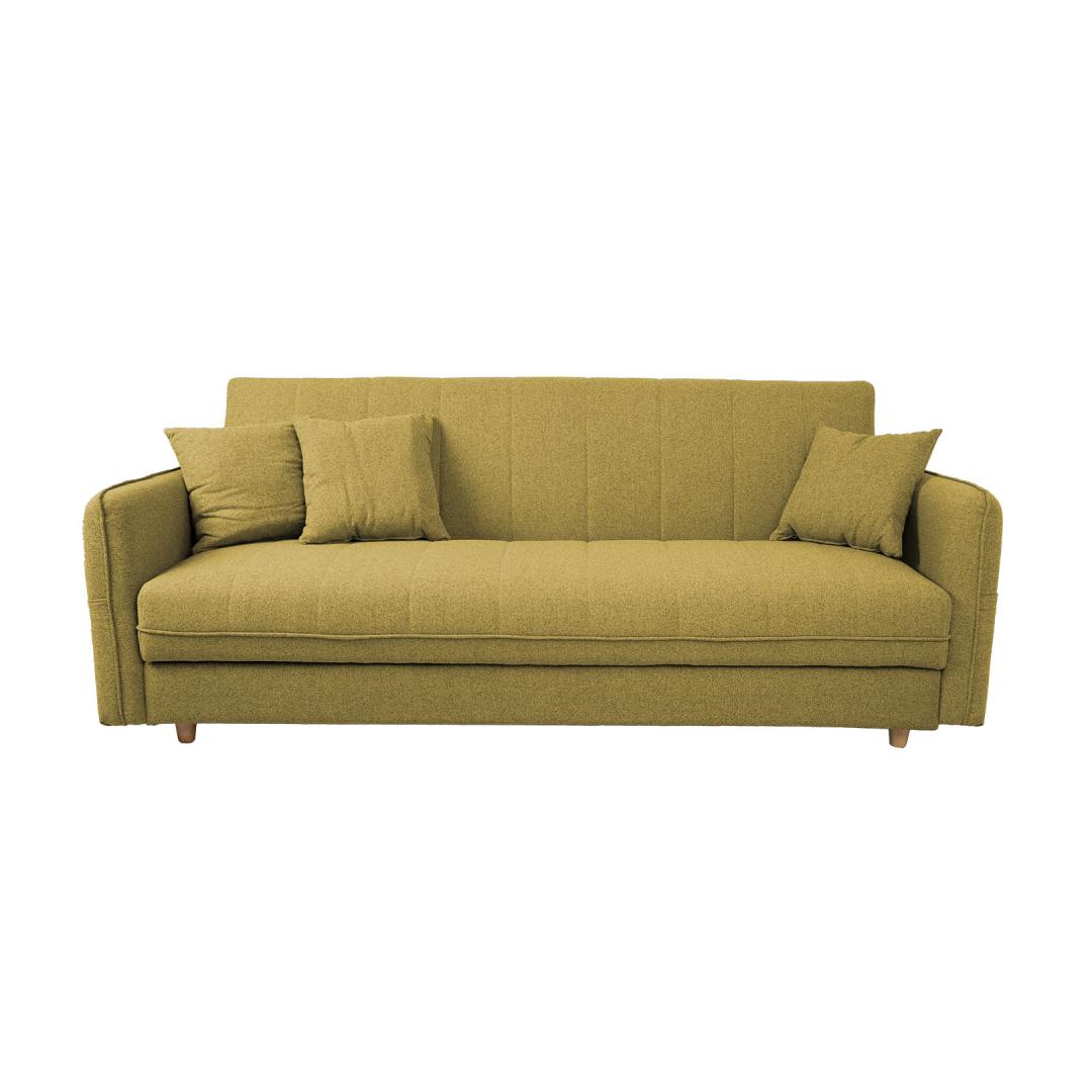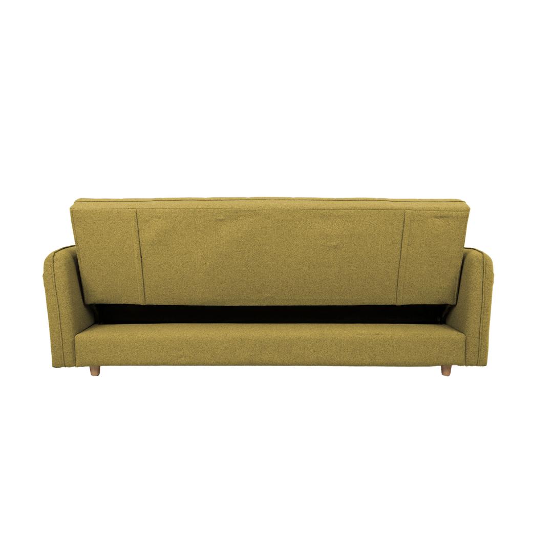 Diivanvoodi VISBY pesukastiga, kollane. Diivani kattematerjal: 100% polüesterkangas. Karkass: puit, vineer. Polsterdus: polüuretaanvaht. Diivanil on lihtne click-clack mehhanism. Istme all on panipaik. Diivani üldmõõdud on 200x88xH93cm. Diivanvoodi mõõdud avatuna on 180x110xH46cm. Diivanil on heledad puidust jalad.