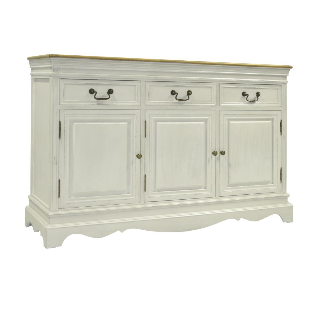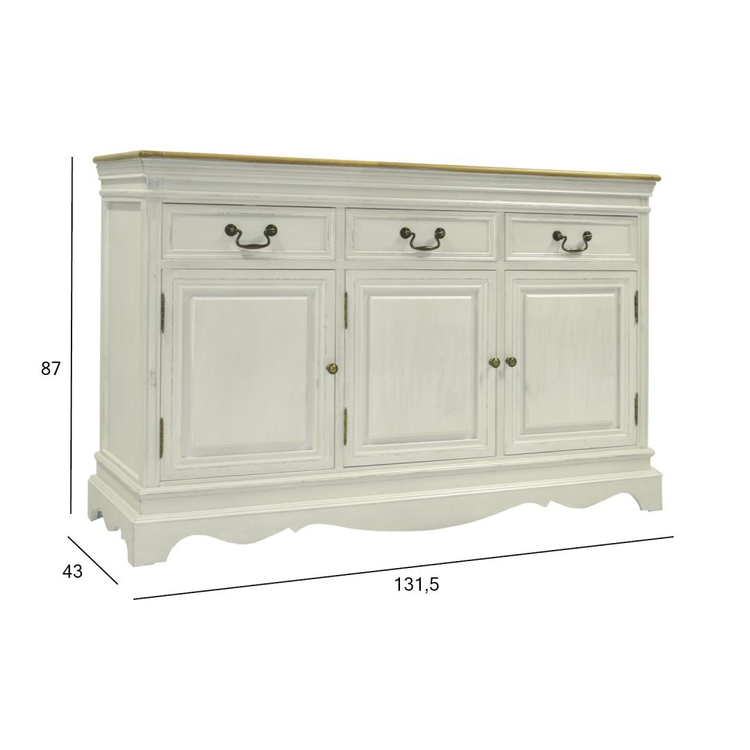 Комод SAMIRA с 3 дверьми и 3 ящиками, 131,5x43xH87см, антично-белый - натуральный. Дерево: ясень, павловния, обработка: лакированный. Комод SAMIRA с 3 дверьми и 3 ящиками, 131,5x43xH87см, антично-белый - натуральный. Дерево: ясень, павловния, обработка: лакированный.