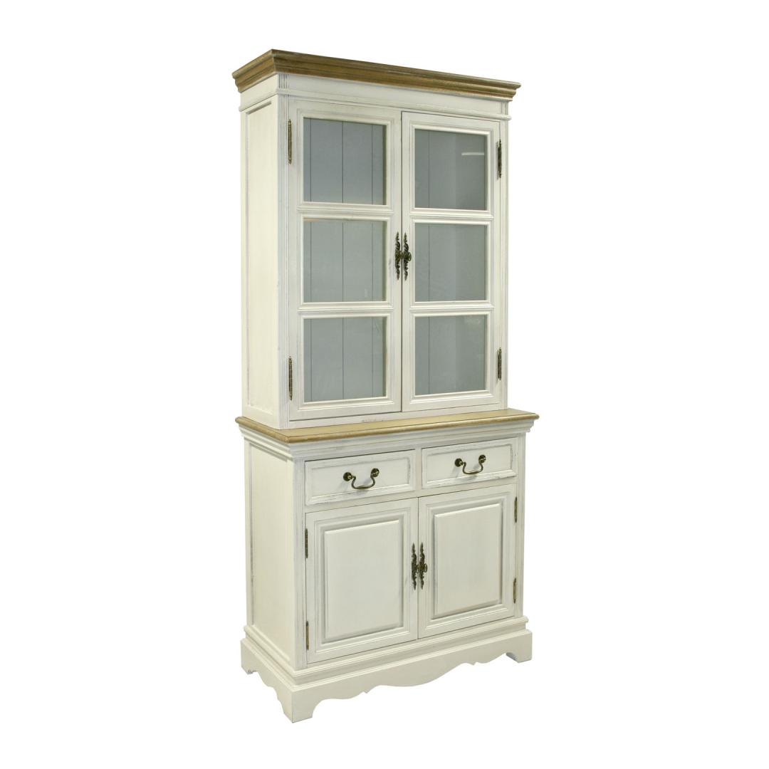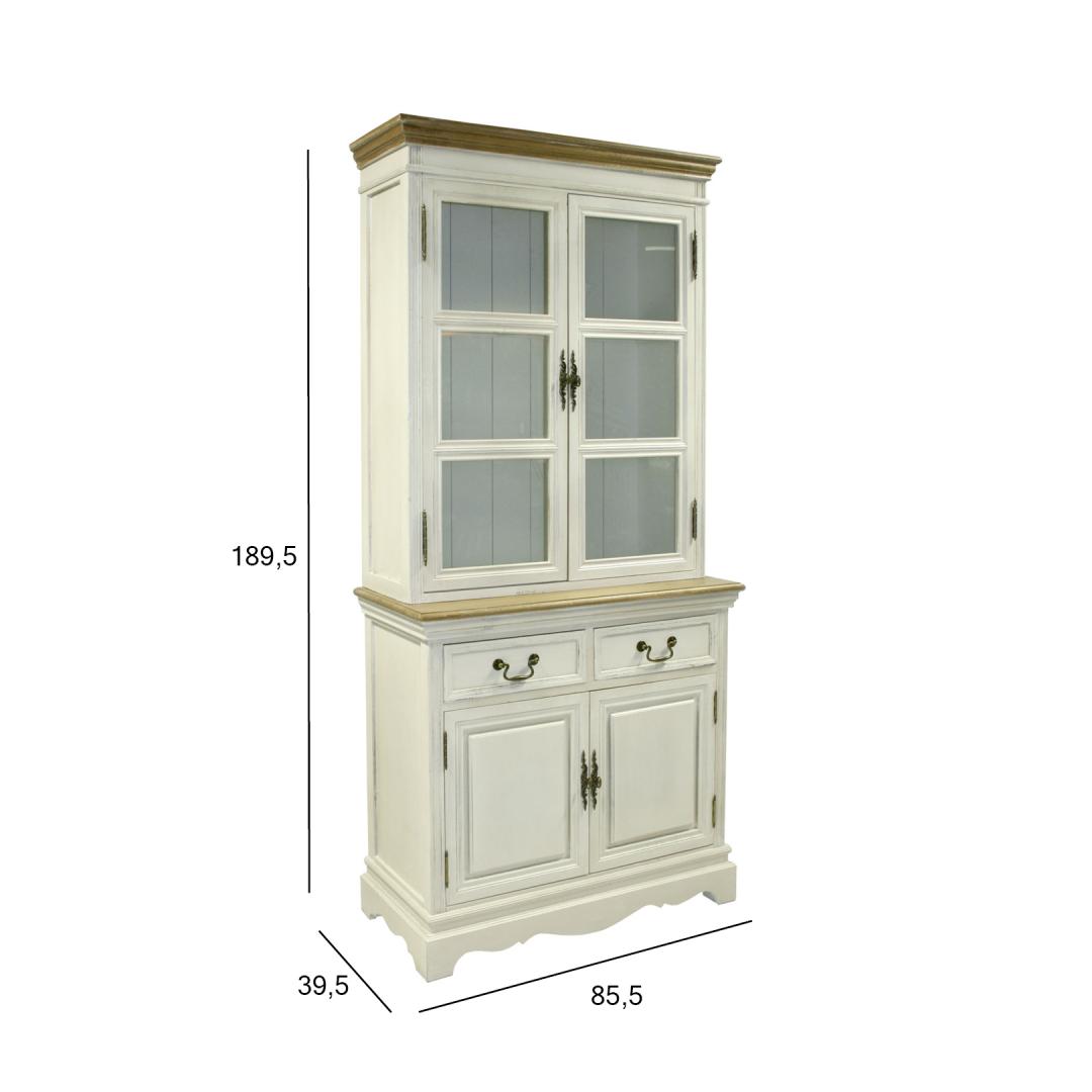 Шкаф-витрина SAMIRA 85,5x39,5/31xH189,5см, антично-белый/натуральный