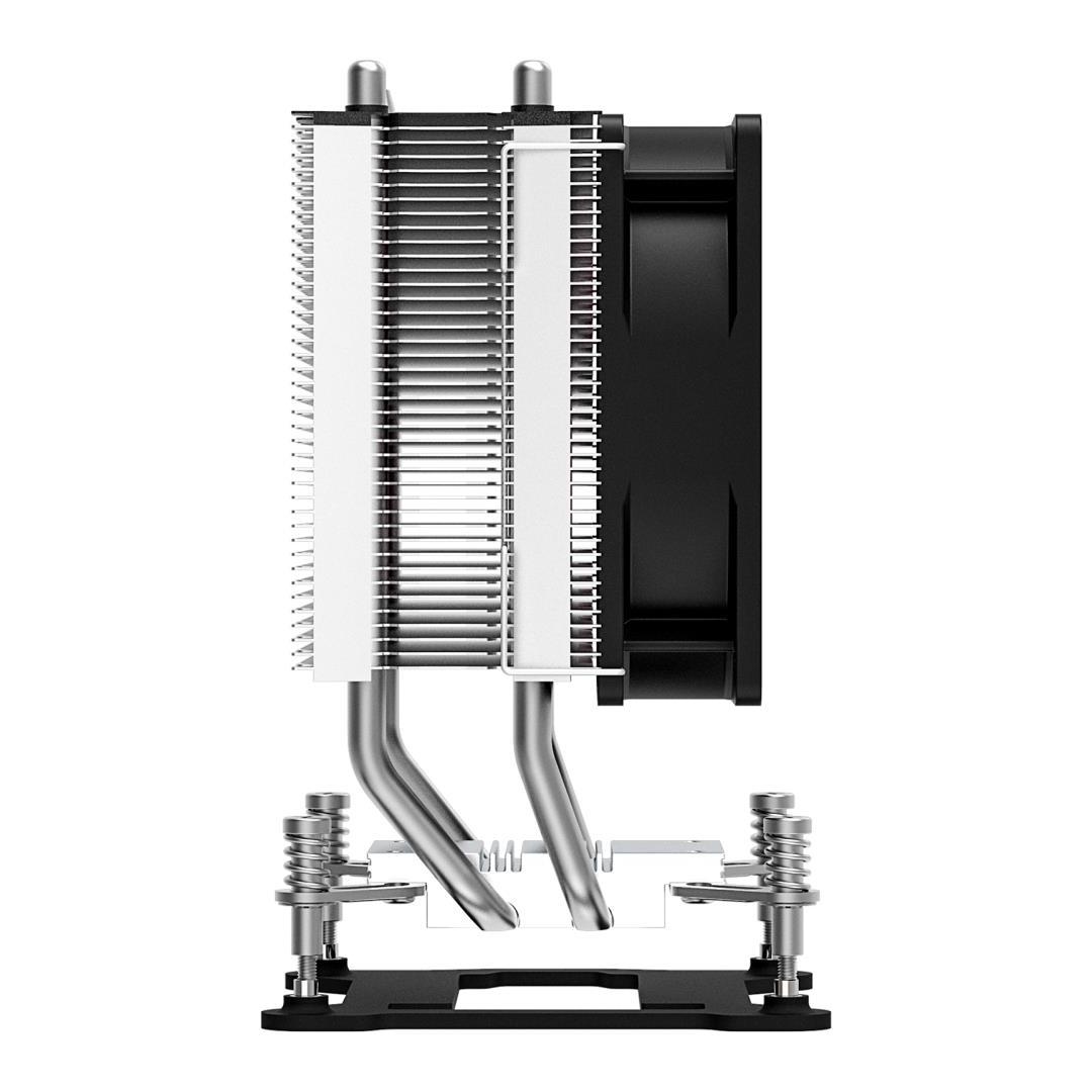 With the I402 INTEL cooler which is part of the Performance C Series, XILENCE presents a compact but very high-capacity cooler for powerful multi-core processors. The small cooler appears in classic tower design and convince with its extremely efficient heat pipes and the fin design arrangement. This design ensures that the air circulates more easily through the innumerable fins. Thus the fan speed of the 92mm PWM fan can be kept very low. Additionally, the heat transmission between CPU and cooler is very evenly and efficient due to the direct contact of heat pipes and CPU.