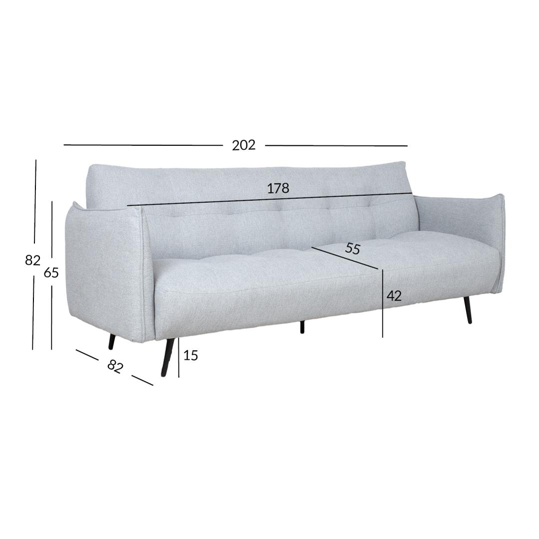 Diivani üldmõõdud on 202x82xH82cm. Istme laius 178cm, istme sügavus 55cm, istme kõrgus 42cm. Käetoe kõrgus maast 65cm.