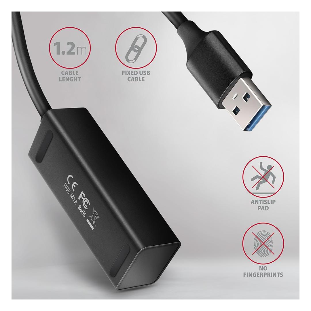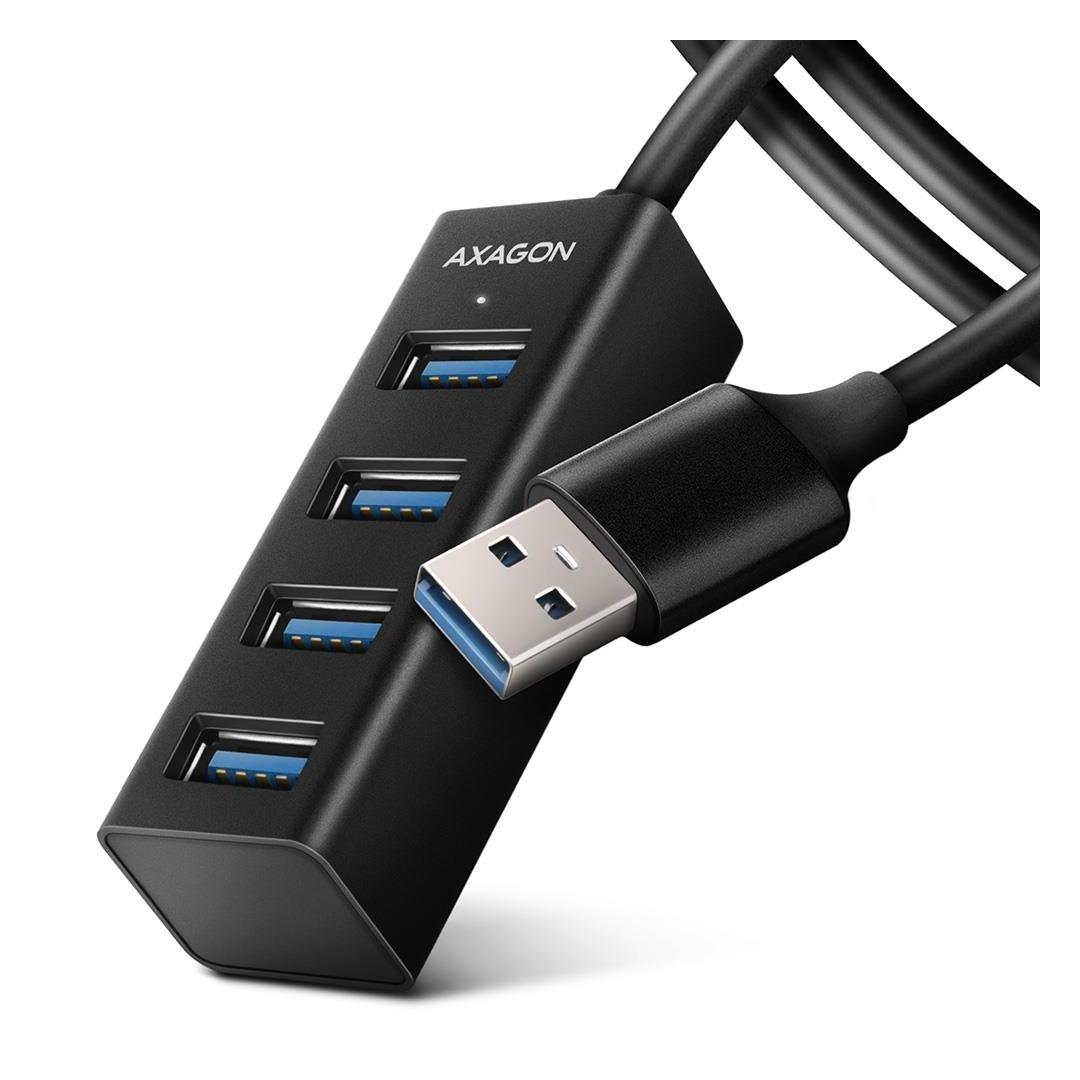 Miniature metal USB 3.2 Gen 1 (USB 3.0) hub AXAGON HUE-M1AL with 1.2 m long USB cable fast and easy connects up to four USB devices to computer.
