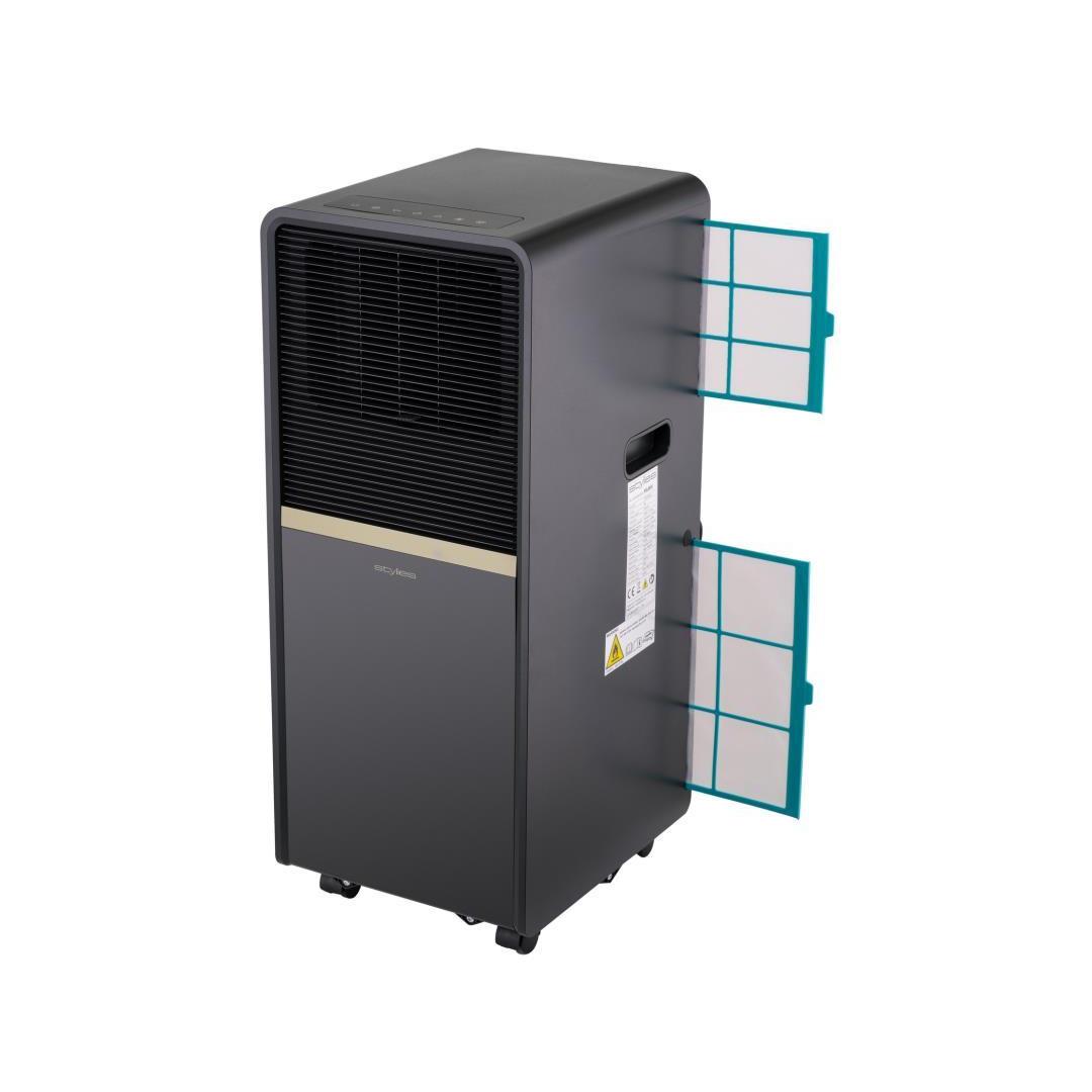 When temperatures in your home become almost unbearable, you urgently need to cool down. The Polarix air conditioner, with 9,000 BTU, offers a quick and flexible solution! Its low energy consumption (energy class A), a 24-hour timer, and a remote control are just some of the features that set it apart, as are additional fan and dehumidification modes. Thanks to its casters, the Polarix can be used immediately anywhere cooling is needed. Also significant is its Swiss-designed design, which exudes style and sophistication with elegant anthracite and luxurious gold.