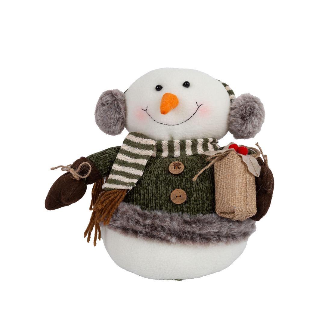 Mõõdud: 23x14xH25cm Dekoratsioon FUN FROSTY, lumememm, rohelise kampsuniga.