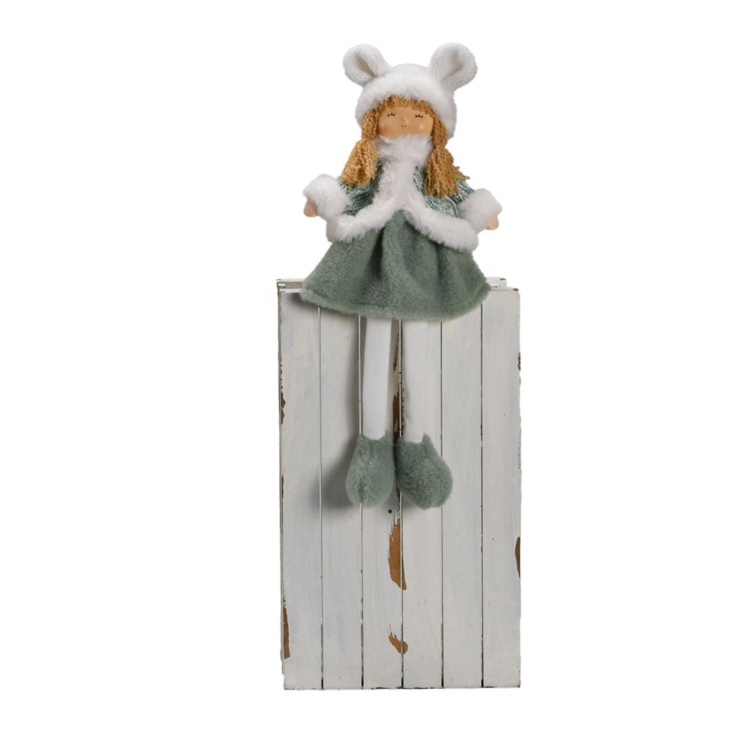 Mõõdud: 14x9xH40cm Dekoratsioon FUN ELLI, istuv jõulutüdruk rohelise kleidiga.