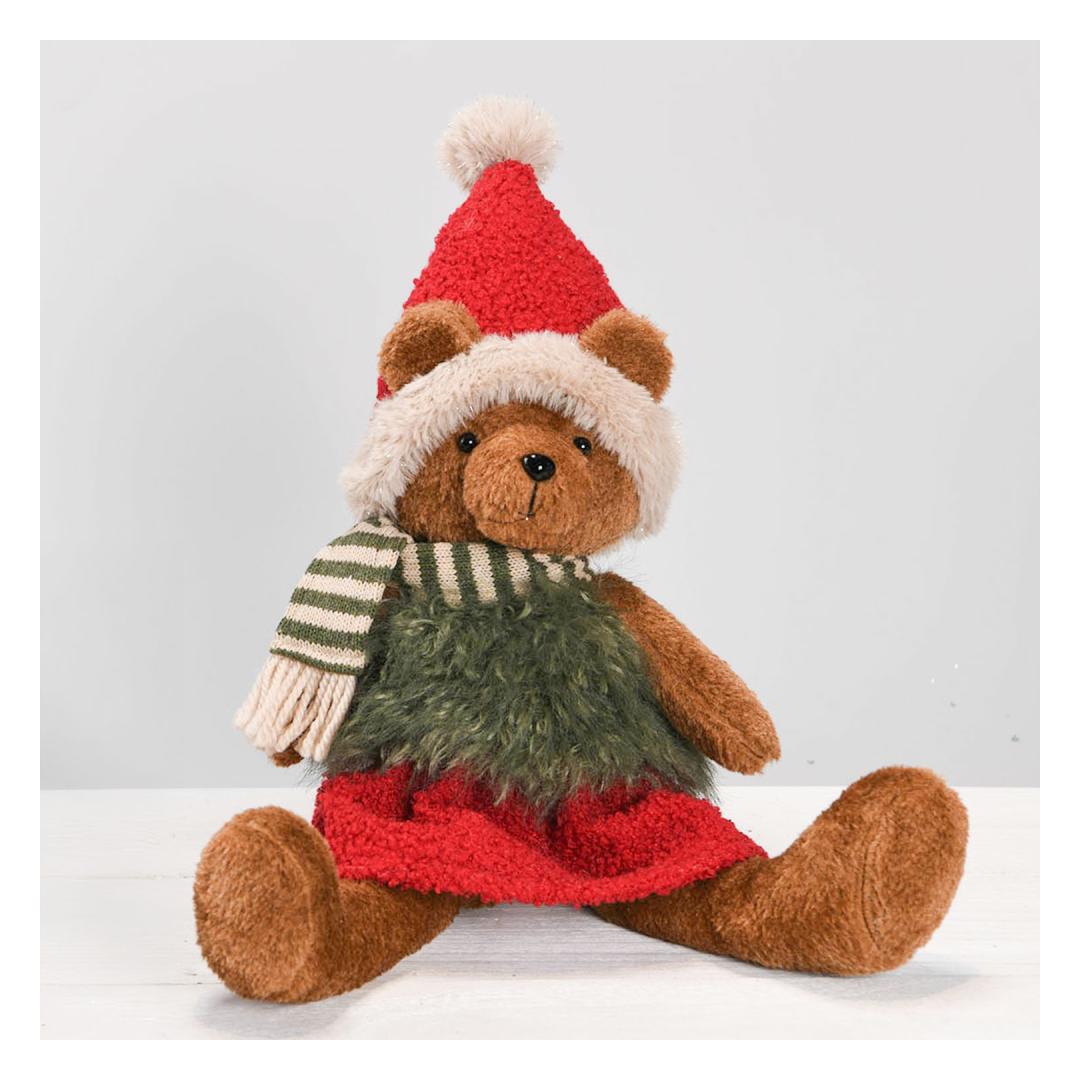 Dekoratsioon FUN SANNA, istuv jõulukaru päkapikumütsiga, tüdruk.