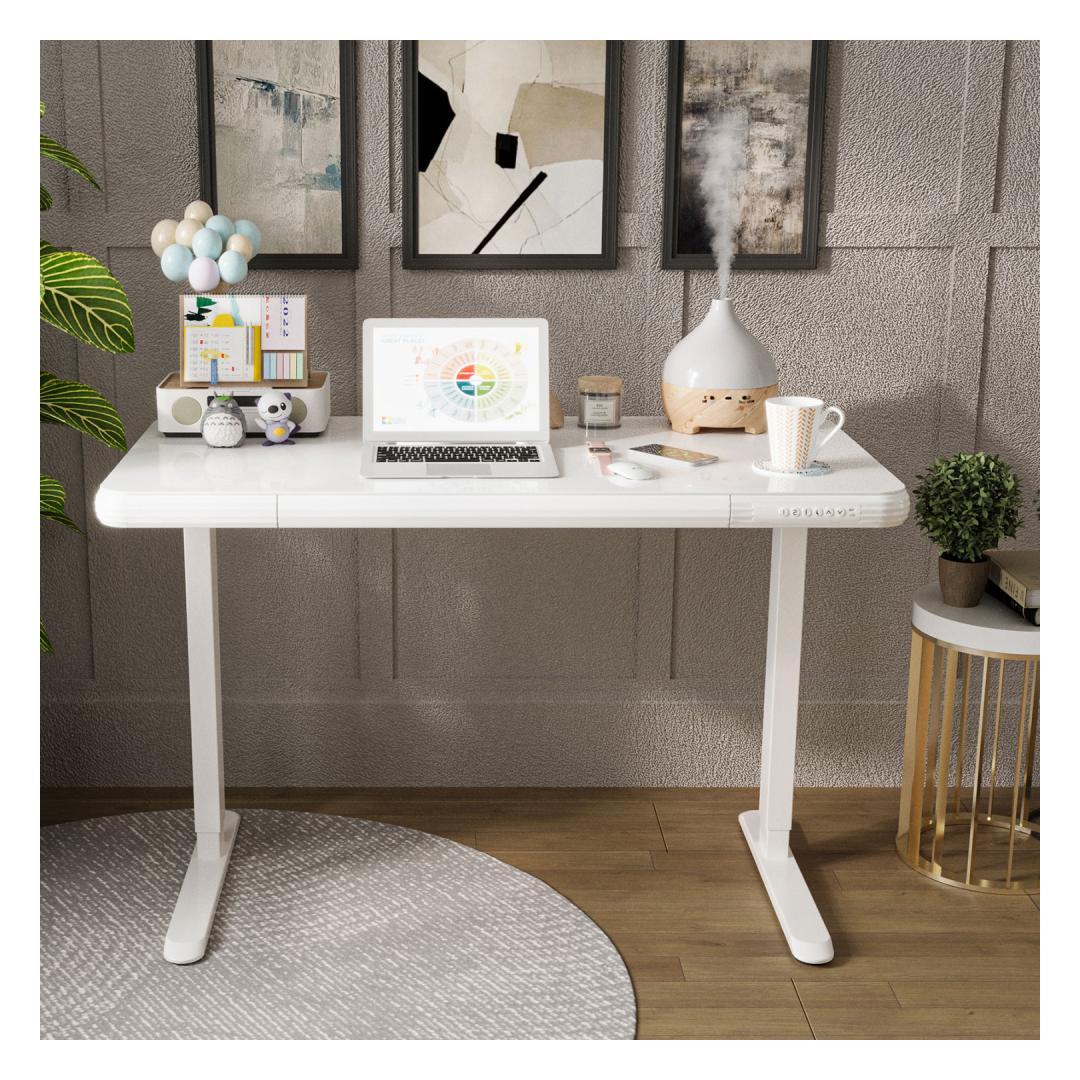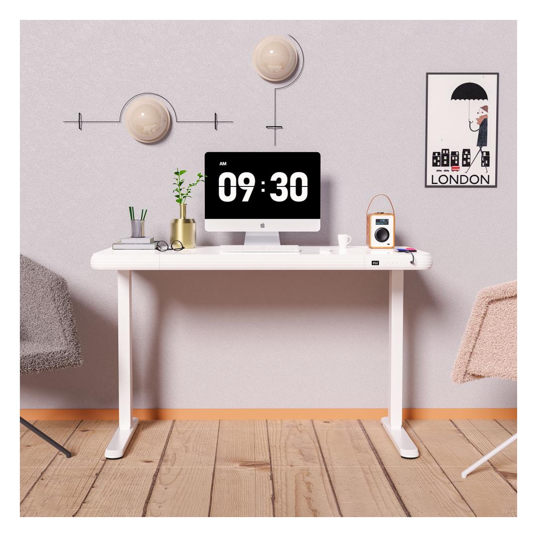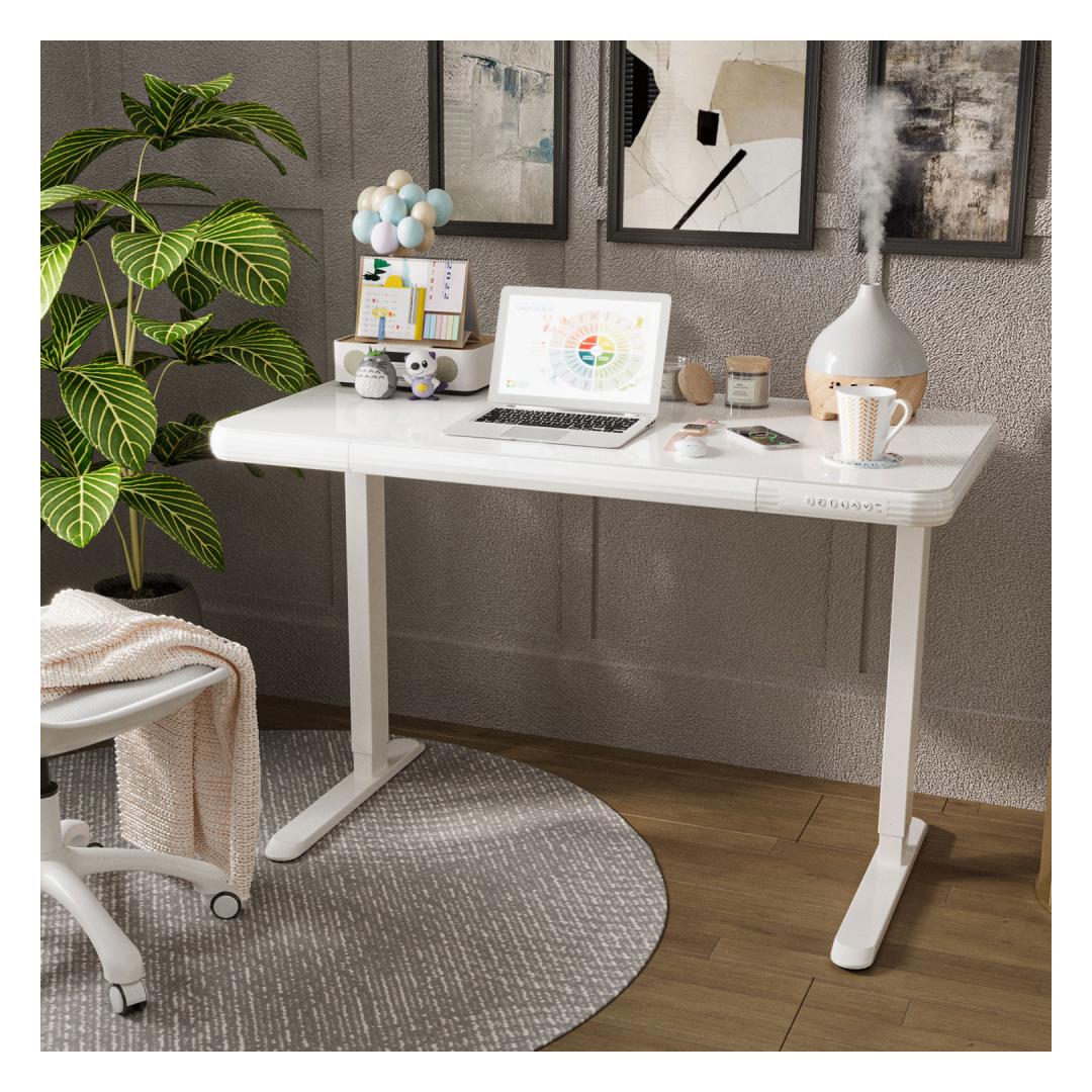 Puhta ja universaalse disainiga reguleeritava kõrgusega töölaud on hõlpsasti integreeritav igasse kontori- või kodukeskkonda.