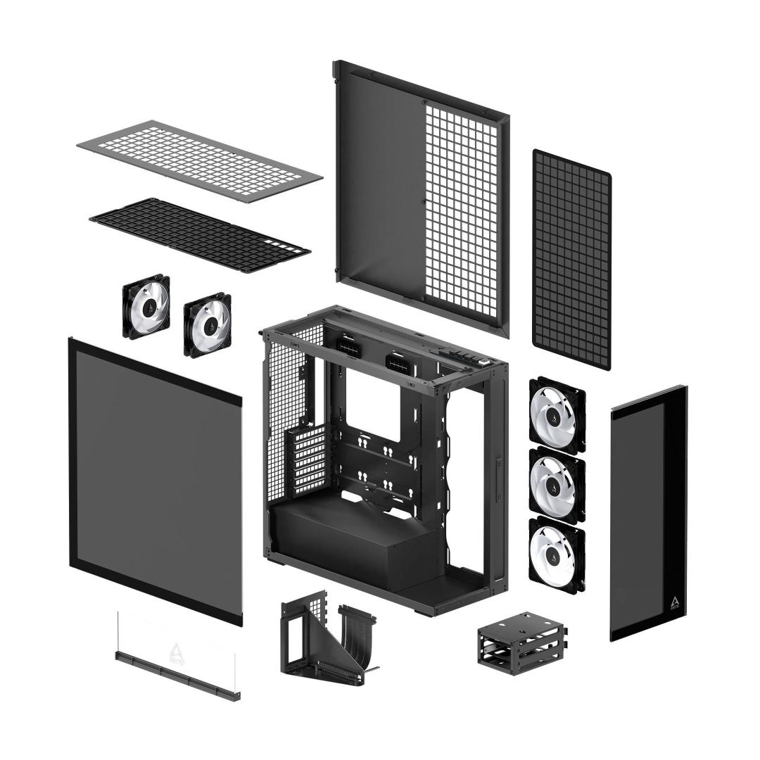 PSU Not included, 2x P12 Pro A-RGB (pre-installed at rear), 3x P14 Pro Reverse A-RGB (pre-installed at side)