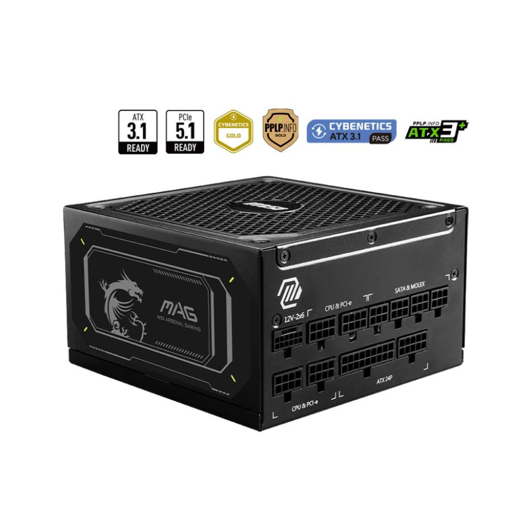 Power Supply MSI MAG A1000GL PCIE5 II ATX 3.1 1000 Watts Efficiency 80 PLUS GOLD PFC Active...