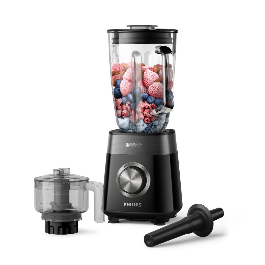 Philips 5000 series HR3032/00. Type: Tabletop blender, Product colour: Black. Bowl capacity: 2 L, Control type: Rotary. Blending bowl material: Glass, Housing material: Plastic, Blade material: Stainless steel. Power: 1200 W, Power source: AC, AC input voltage: 220 - 240 V. Width: 298 mm, Depth: 187 mm, Height: 328 mm