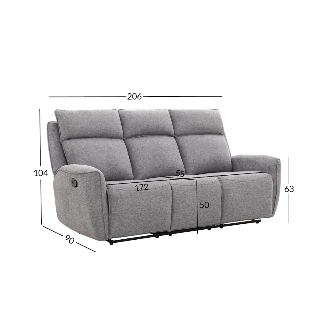 Diivan MAREN 3-kohaline manuaalne recliner 206x90xH104cm, hall