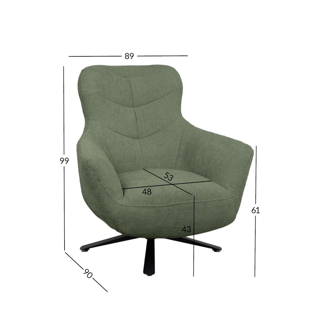 Tooli üldmõõdud on 89x90xH99cm. Istme laius 48cm, istme sügavus 53cm, istme kõrgus 43cm. Käetoe kõrgus maast 61cm.