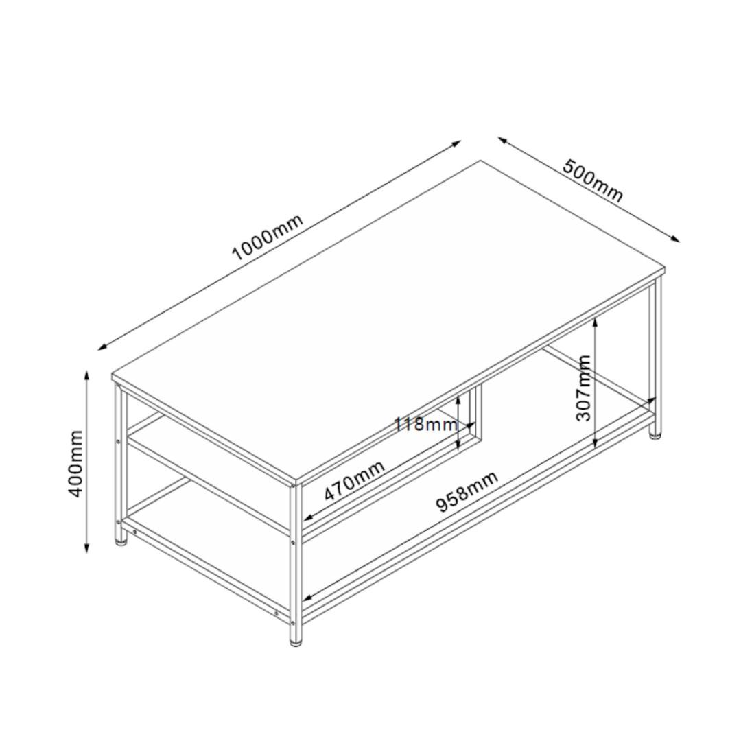 Laua raam on valmistatud metallist ja viimistletud musta pulbervärviga. Diivanilaud DIMITRA 100x50xH40cm, rustik/must.