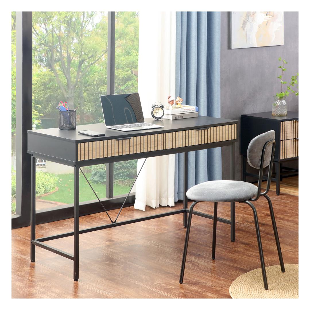 Jalad ja raam on valmistatud metallist ja viimistletud musta pulbervärviga. Kirjutuslaud HELVE 2-sahtliga 120x48xH76cm.