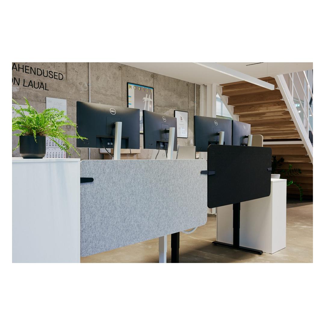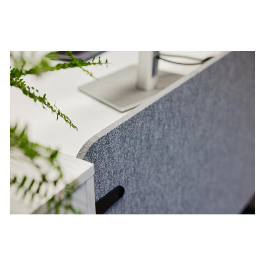 Фетровая перегородка MUTEK для стола снижает уровень шума в офисах открытой планировки, выполняя функцию разделителя пространства и элемента дизайна интерьера с функцией маскировки. Ассортимент перегородок включает квадратную и радиусную (угол R55) версии. Обе модели доступны в трёх размерах и могут комбинироваться как в качестве фронтальных, так и боковых перегородок.