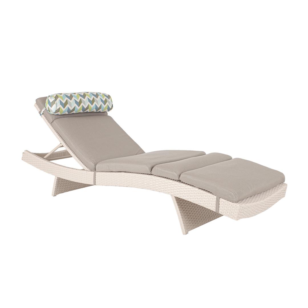 Кресло для отдыха STELLA beeþ. Алюминиевый каркас шезлонга обтянут белой пластиковой оплёткой. В комплект входит мягкий чехол на сиденье с подушкой-валиком. Чехол сиденья изготовлен из бежевой ткани sunbrella, устойчивой к ультрафиолетовому излучению и атмосферным воздействиям (100% акрил). Спинку шезлонга можно поставить в горизонтальное положение или выбрать подходящий угол наклона из четырех положений. Габаритные размеры лежака 200x65xH33см. Длина спинки 80 см, сиденья 116 см. Размеры чехла сиденья 80/116х59/66х6см, размеры роликовой подушки 58хГ15см. Изделие очень прочное при изменении погодных условий и простое в уходе. Чтобы продлить срок службы садовой мебели, мы рекомендуем использовать чехлы для садовой мебели. ХРАНЕНИЕ: В конце летнего сезона мы рекомендуем хранить садовую мебель в помещении. Очистите и высушите мебель перед хранением. Для хранения используйте прохладное, сухое и хорошо проветриваемое помещение.