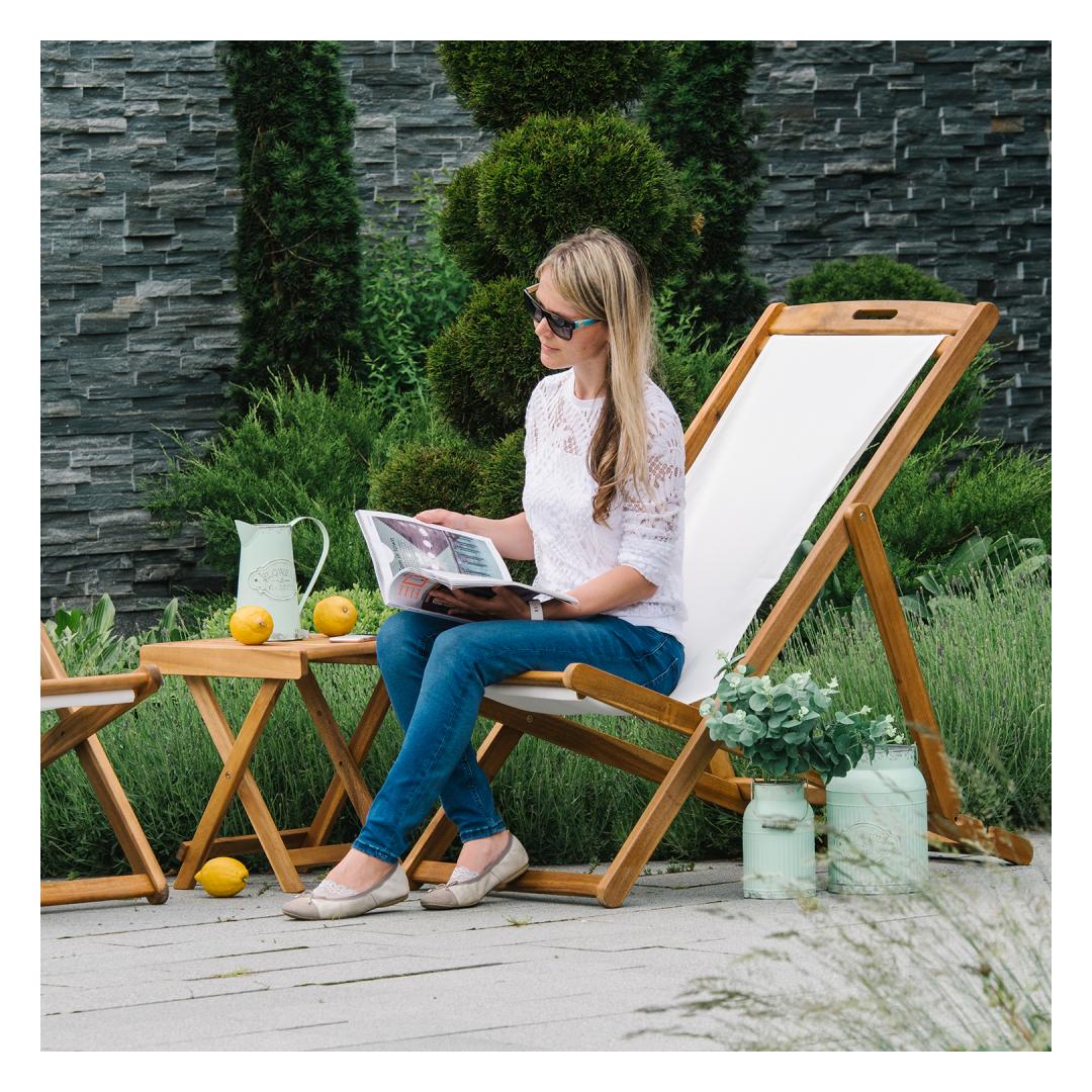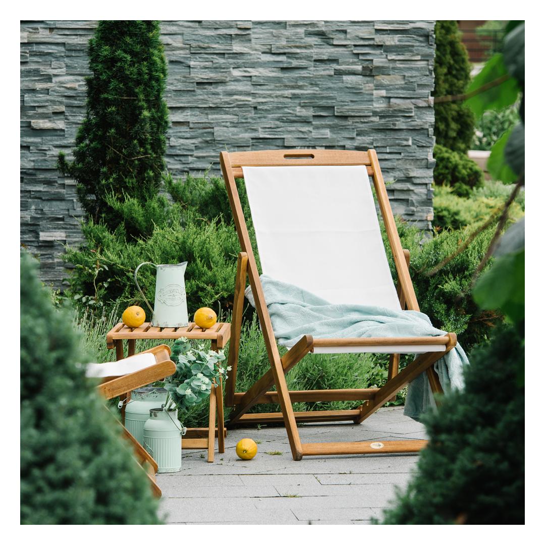 Шезлонг FINLAY 62,5x108xH105см, белый. Складное кресло с регулируемой спинкой — удобный и практичный выбор! Каркас стула изготовлен из древесины акации и покрыт маслом для защиты дерева. Сиденье стула изготовлено из белого текстиля, который хорошо пропускает воздух, быстро сохнет и прост в уходе. Высота спинки регулируется в трех положениях. В сложенном виде кресло легко переносить или хранить. Ограничение по весу 100 кг. ХРАНЕНИЕ: В конце летнего сезона мы рекомендуем хранить садовую мебель в помещении. Очистите и высушите мебель перед хранением. Для хранения используйте сухое и хорошо проветриваемое помещение. Защищайте мебель от прямых солнечных лучей во время хранения.