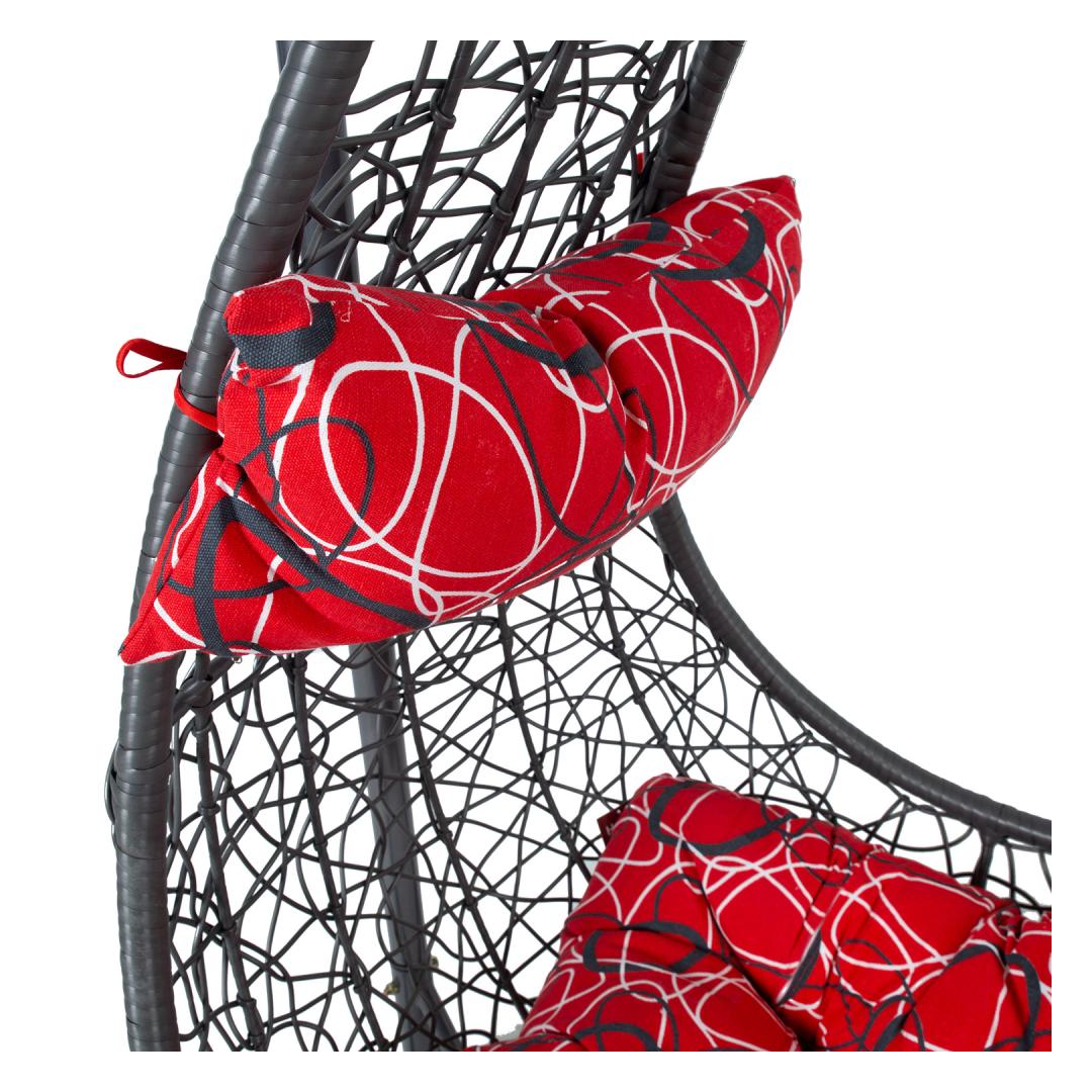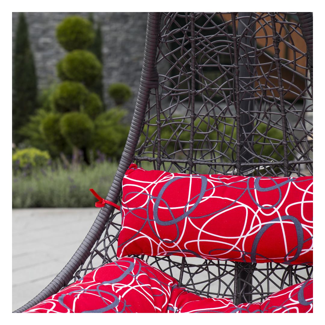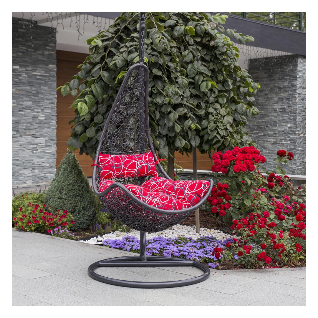Подвесное кресло COCO темно-серого цвета. Подвесное кресло предлагает идеальный способ расслабиться. Изделие включает в себя удобные и мягкие подушки. Подушки с красным рисунком покрыты полиэстеровой тканью и наполнены полиэфирным волокном. Стальной каркас подвесного кресла покрыт пластиковой оплеткой темно-серого цвета. Размеры стальной рамы D105xH200см, диаметр трубы 42мм. Размеры подвесного стула составляют 120x105xH195 см, а грузоподъемность изделия — 100 кг. УХОД: Подвесное кресло нельзя оставлять на солнце или под дождем в течение длительного времени, так как это сократит срок службы изделия. Продукт следует хранить в сухом и затененном месте. ВНИМАНИЕ: Изделие не предназначено для использования при сильном ветре и дожде.