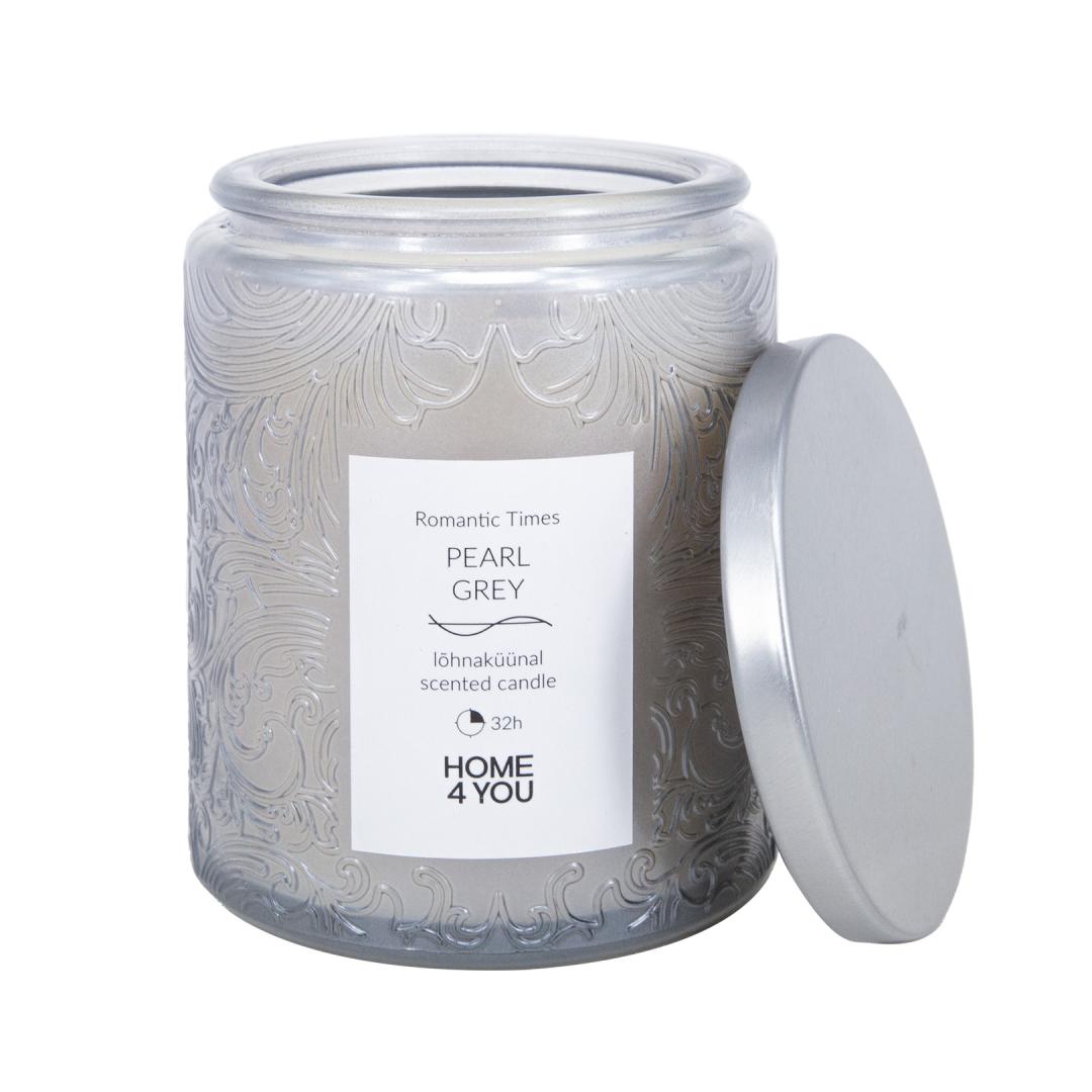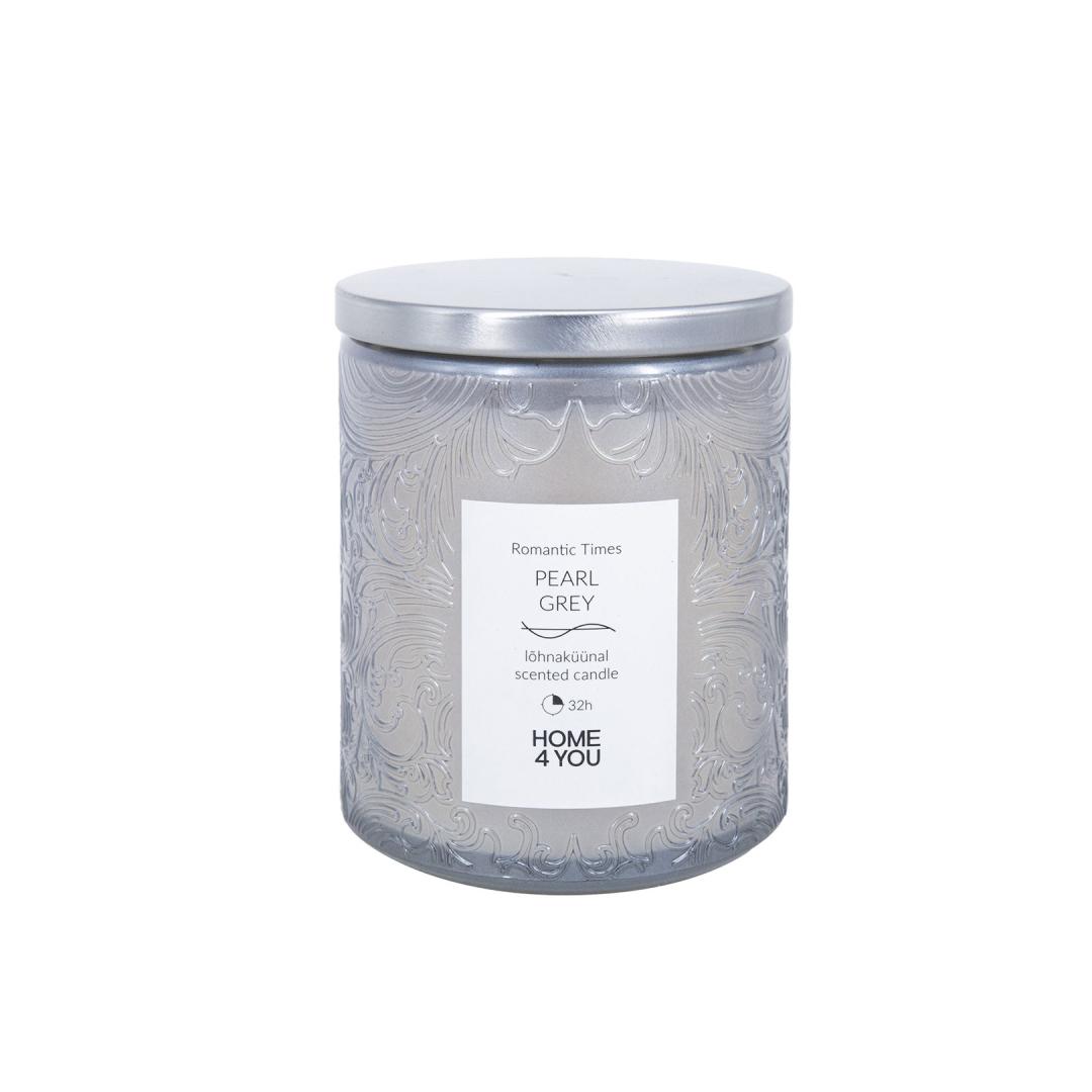 Свеча стеклянная ROMANTIC TIMES H9см, жемчужно-серая, ваниль и корица