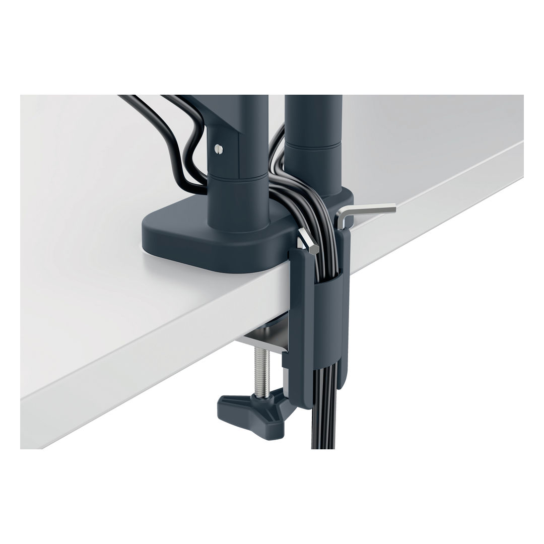 • Lihtne paigaldus tänu kaasasolevale kiire vabastusega eemaldatavale VESA® plaadile (75 x 100 mm) ning silikoonkattega C-klambrile, mis vähendab vibratsiooni ja kaitseb lauapinda, või alternatiivina läbi kaabliava (laua paksus: 10–80 mm).