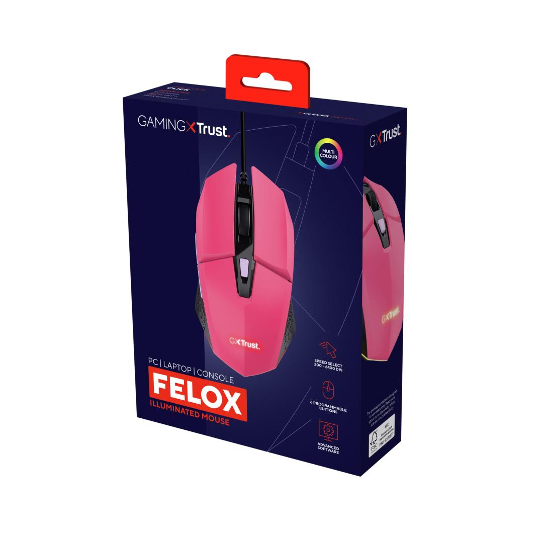 MOUSE USB OPTICAL GAMING PINK/GXT109P FELOX 25068 TRUST