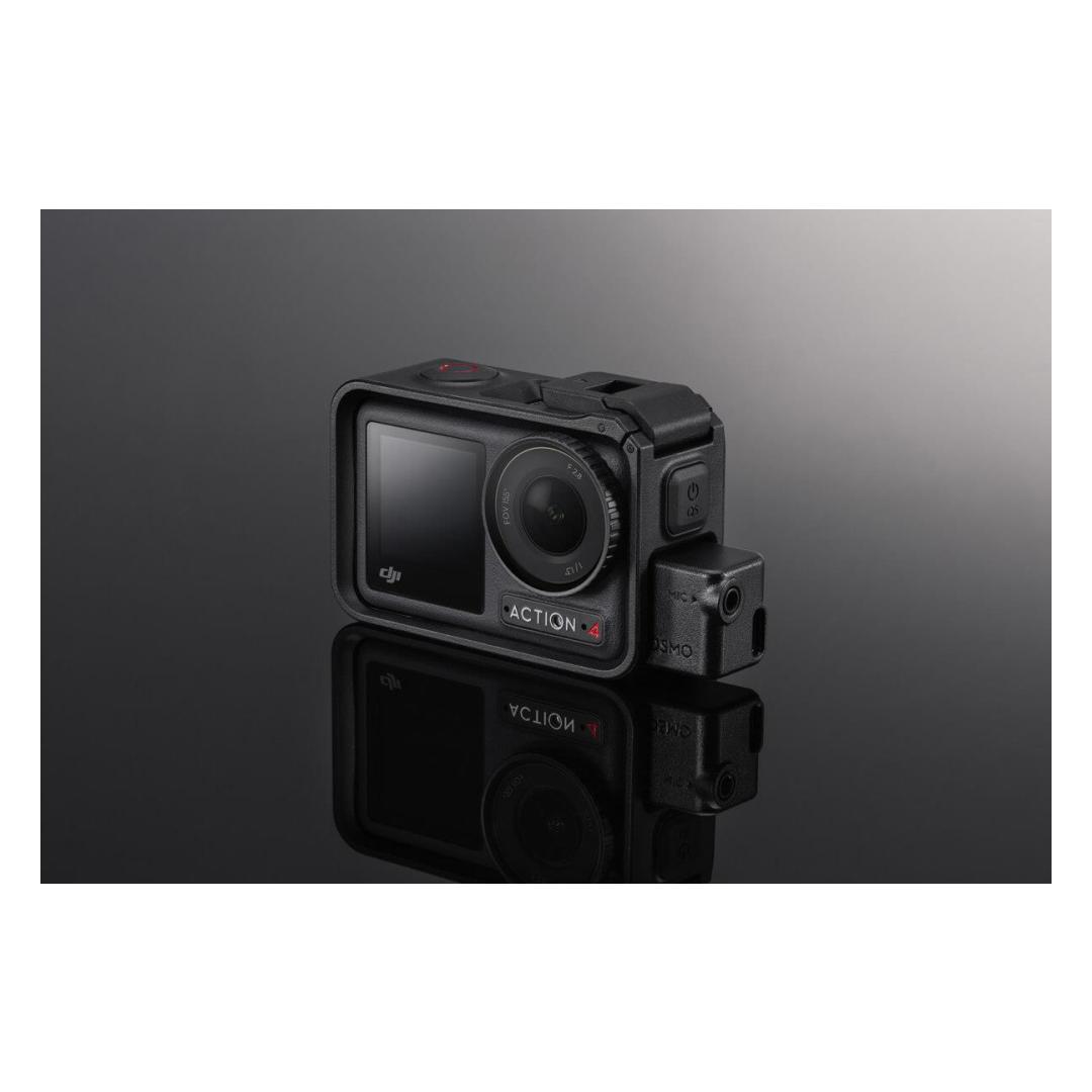 Customized adapter attachment for Osmo Action series products for a secure and stable audio connection. Once installed, it supports audio input from a 3.5mm mic for clear, high-quality vocal recording, even in high-speed sports like motorcycle racing. The expanded Type-C port can also be used for charging.
