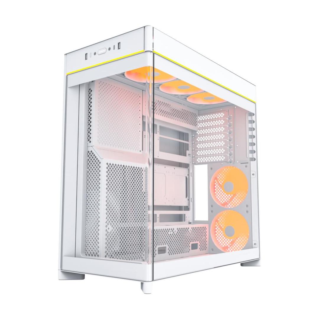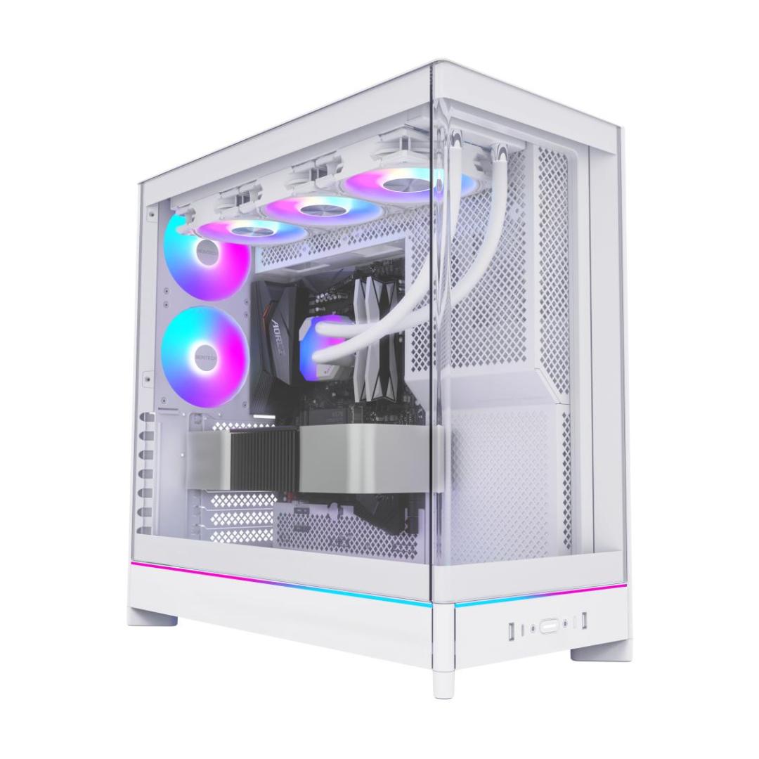 The 8° curved glass front panel offers a minimal visual interruption, delivering a wide panoramic view that showcases your build with enhanced clarity and style.