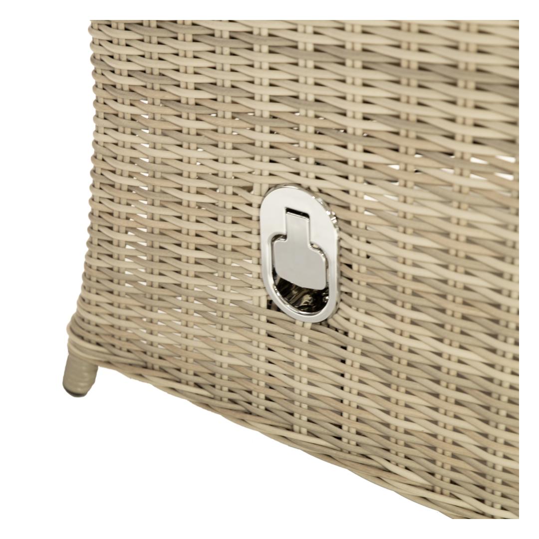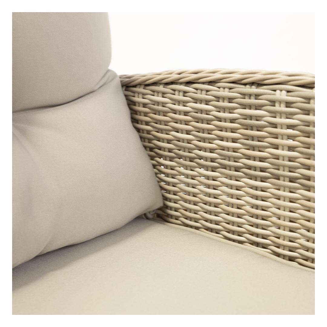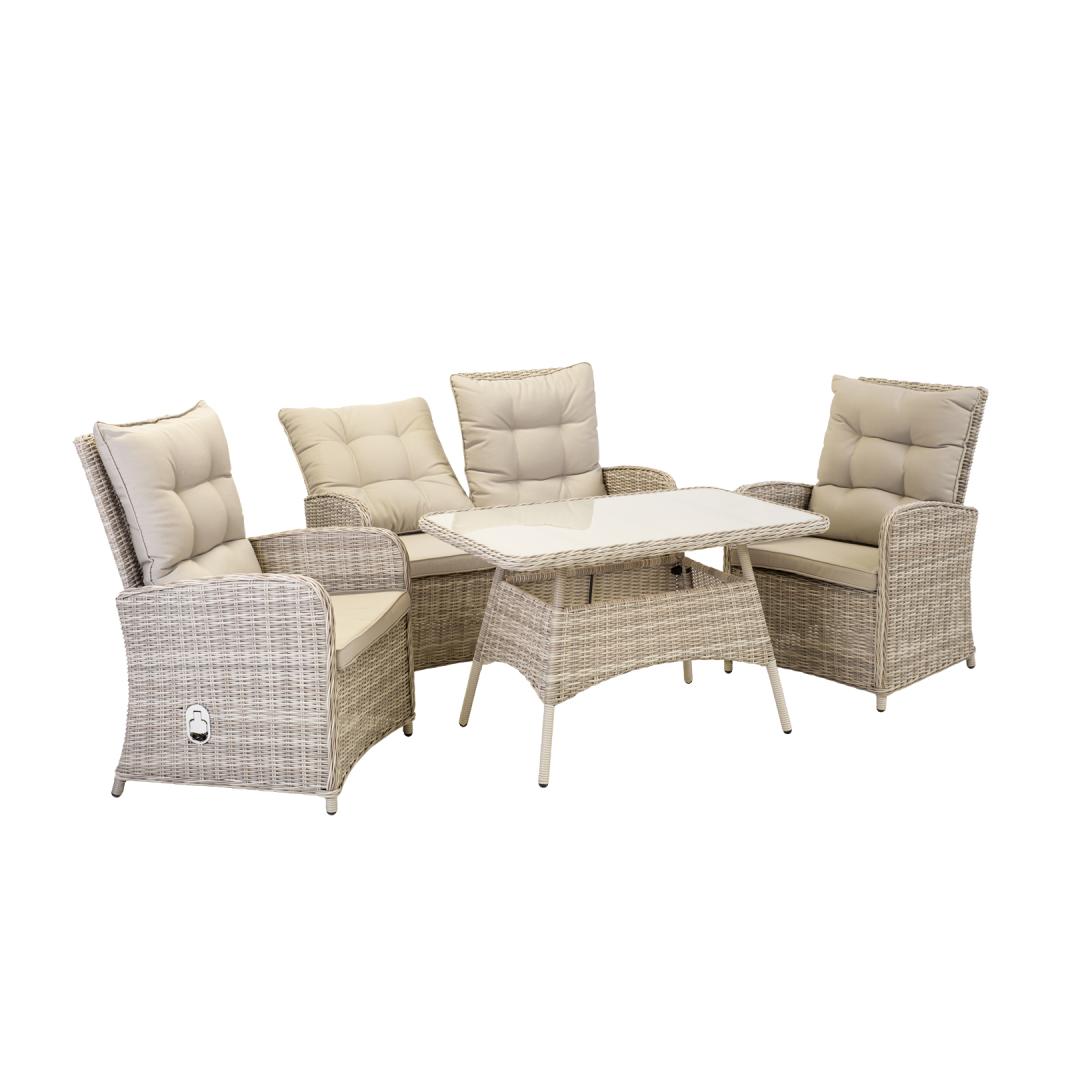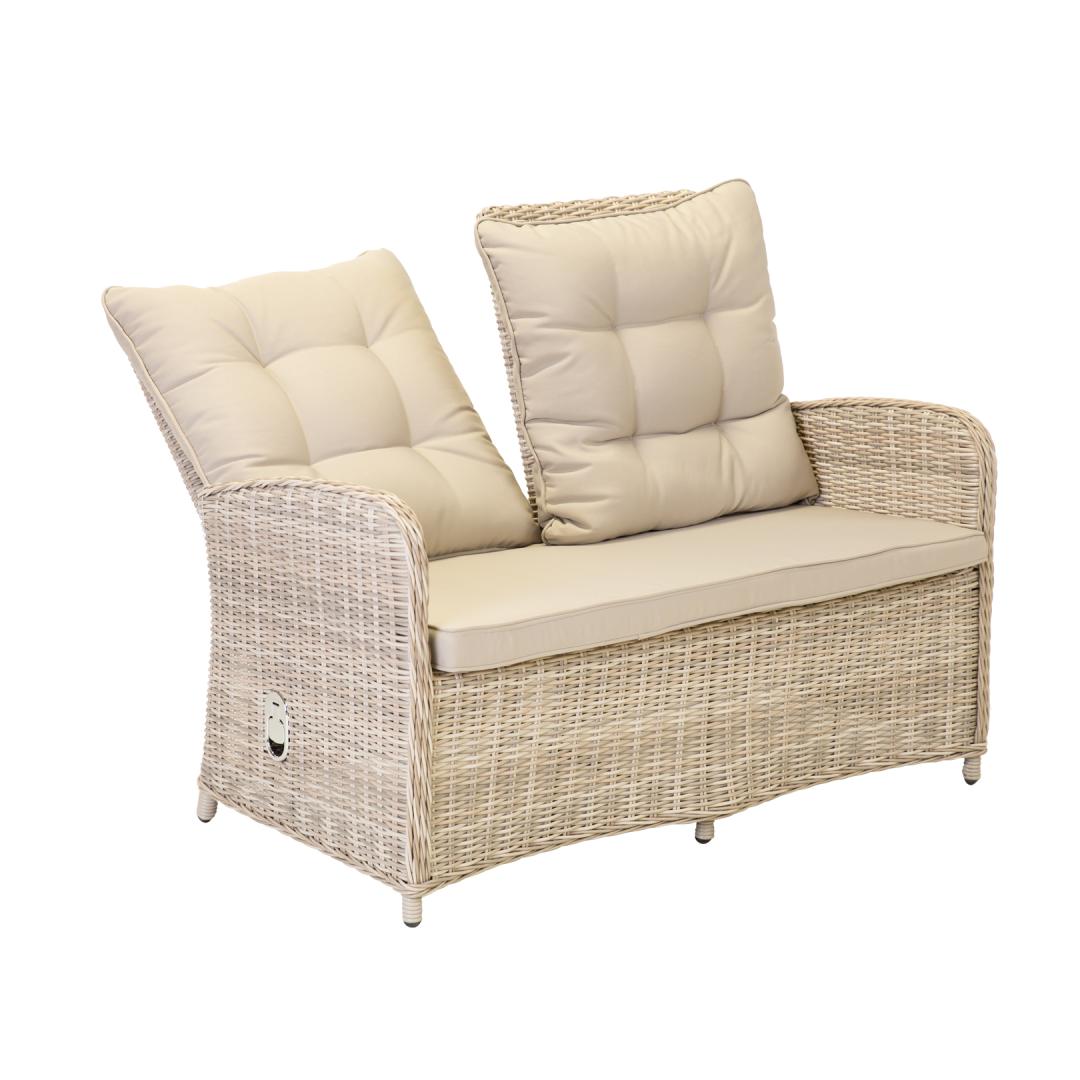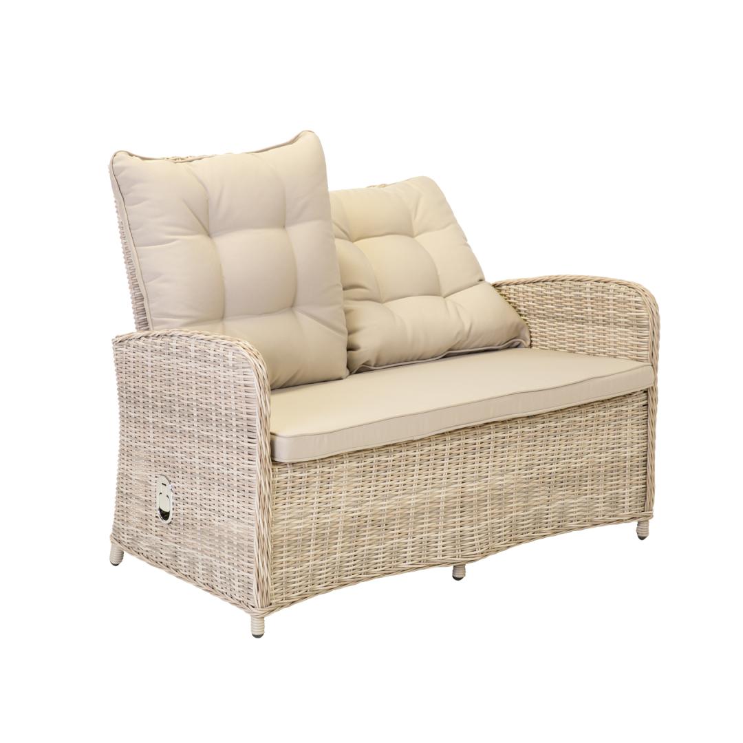Aiamööblikomplekt EMERALD laud, diivan ja 2 tooli. Kõigi komplekti osade raamid on valmistatud alumiiniumist ja kaetud plastikpunutisega. Laua mõõdud on 109x65xH61,5cm. Lauaplaat: 5mm karastatud klaas. Diivani mõõdud on 120x70,5xH98,5cm, tooli mõõdud on 62x70,5xH98,5. Toolide ja diivani seljatoed on reguleeritavad. Padjad kuuluvad komplekti. Padjakatted on valmistatud helehallist polüesterkangast. Istmepatjade paksus 6cm. Toode on muutlikes ilmastikutingimustes vastupidav ja väga lihtsalt hooldatav. Kaitset ilmastikuolude eest vajavad ainult padjad. Välitingimustes kasutatava mööbli eluea pikendamiseks soovitame kasutada välimööbli katteid. HOIUSTAMINE: suvehooaja lõppedes soovitame aiamööblit hoiustada siseruumides. Puhastage ja kuivatage mööbel enne hoiule panekut. Kasutage hoiustamiseks kuiva ning hea ventilatsiooniga ruumi.