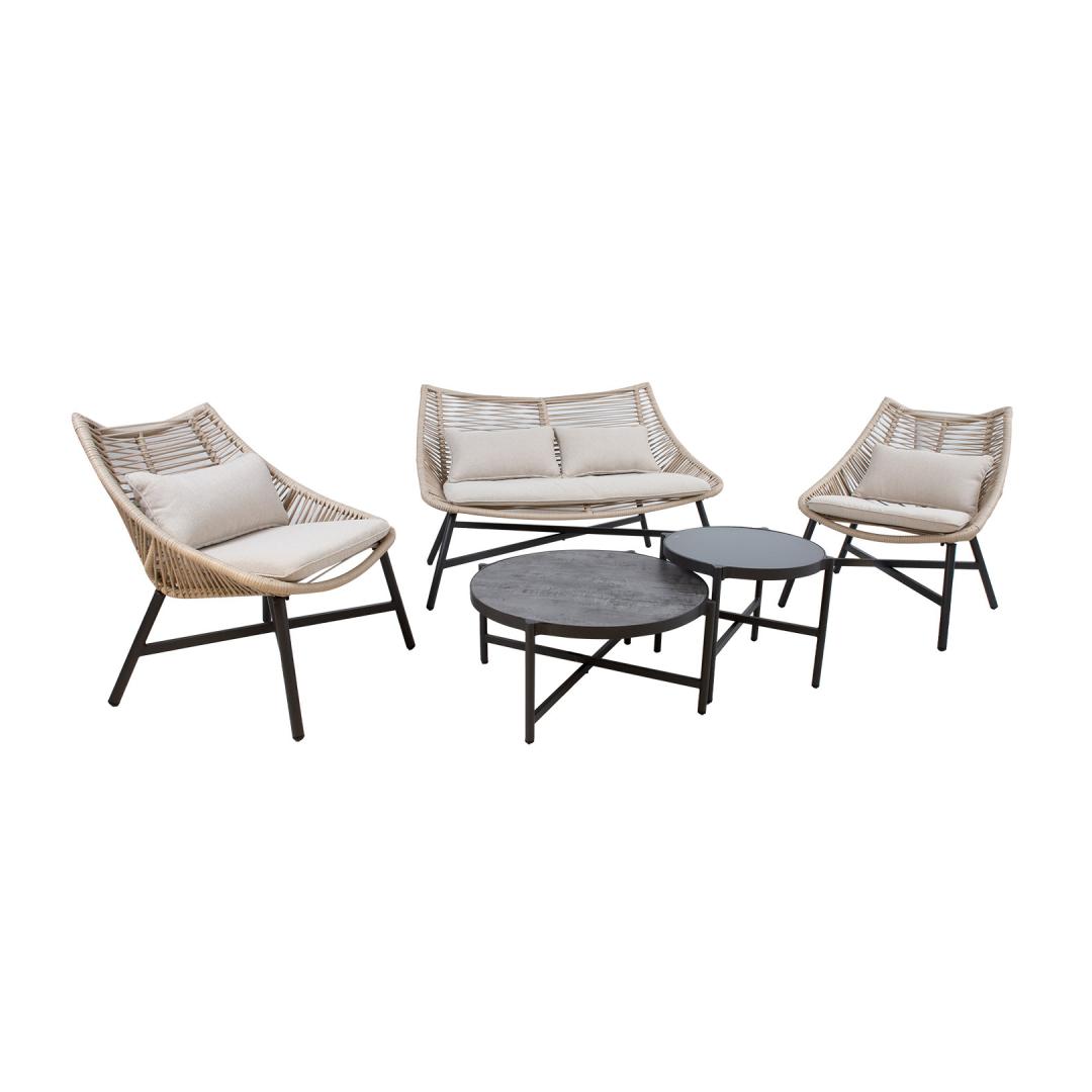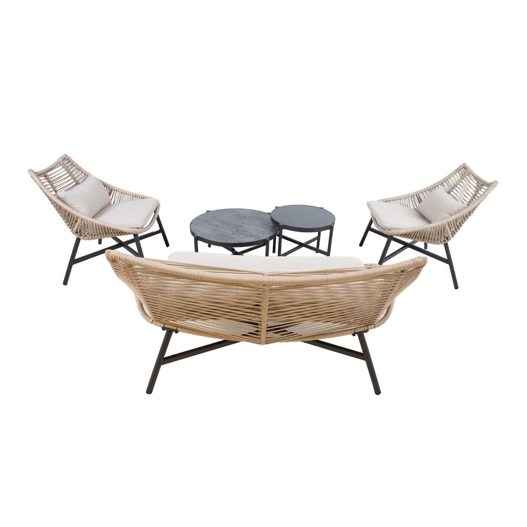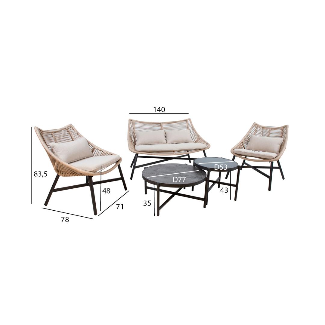Aiamööblikomplekt HELSINKI diivan, 2 tooli ja 2 lauda, beeþ