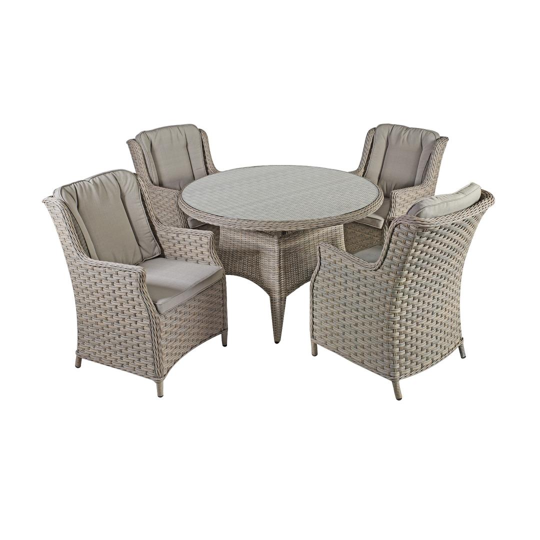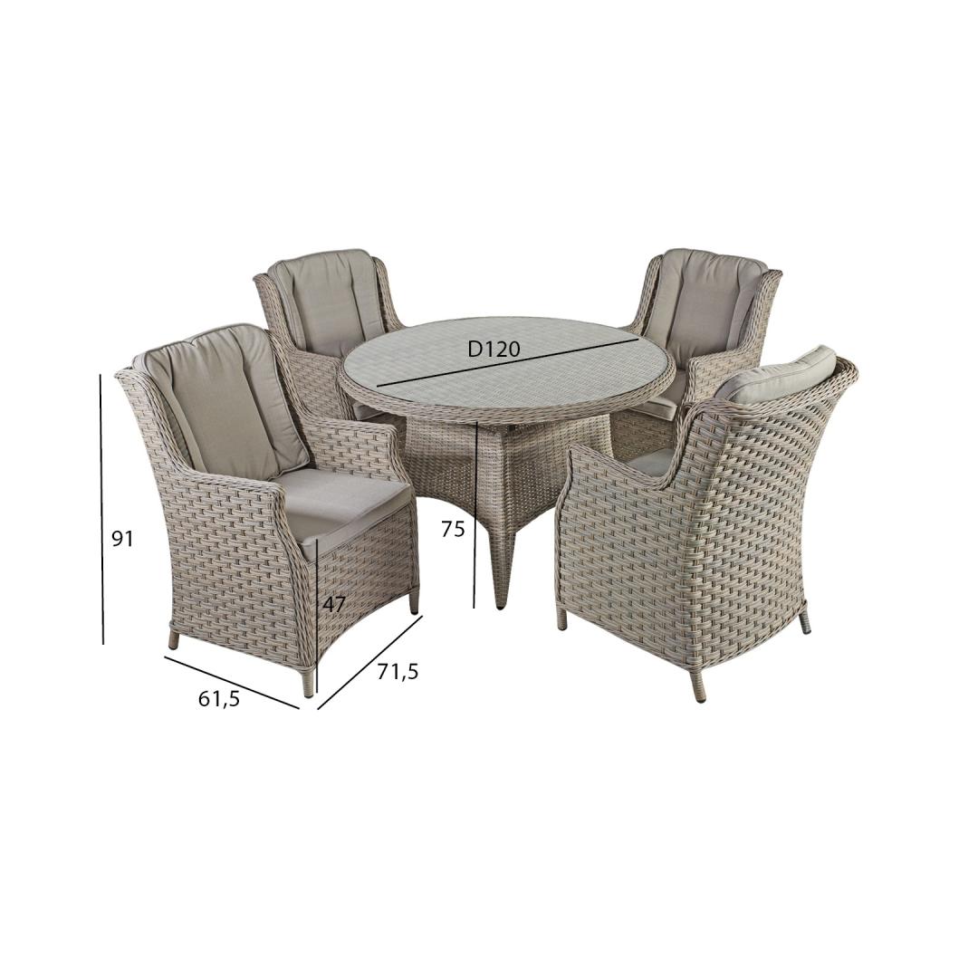 Aiamööblikomplekt PACIFIC 4-tooliga (10494) D120xH75cm, alumiiniumraam plastikpunutisega, värvus: hallikasbeeþ