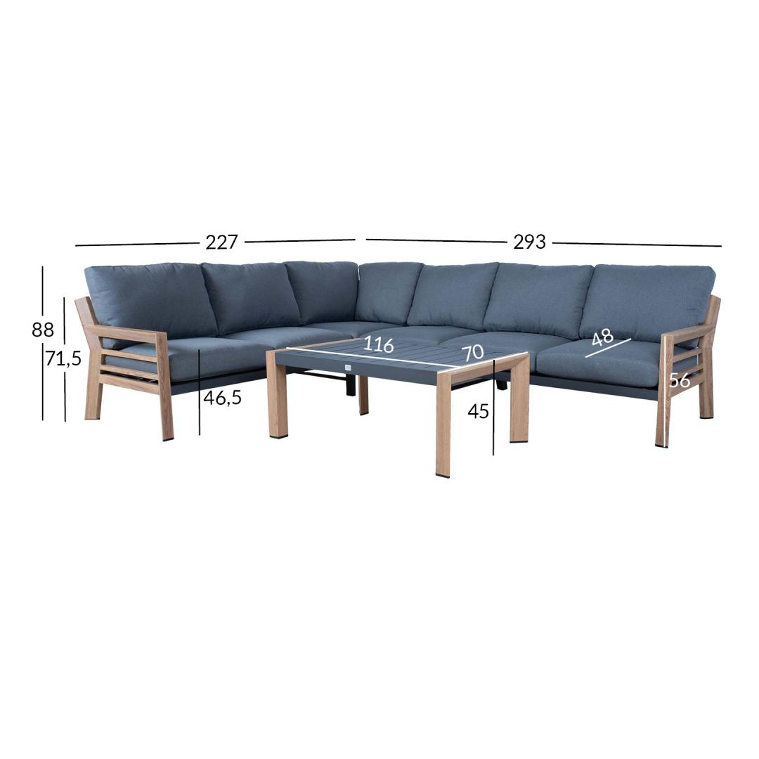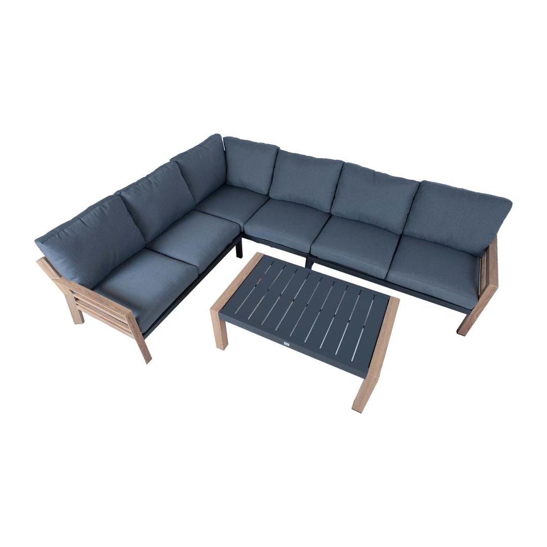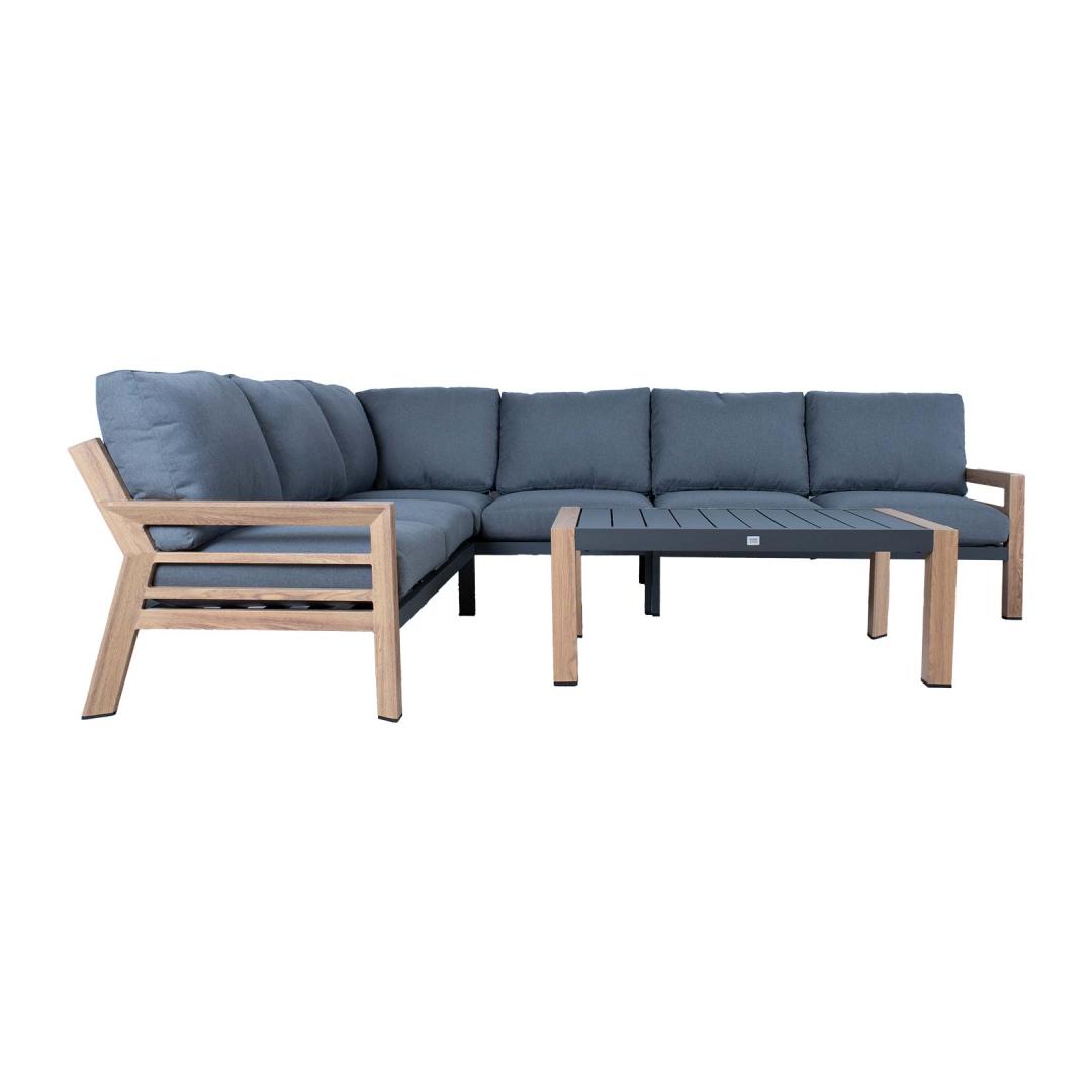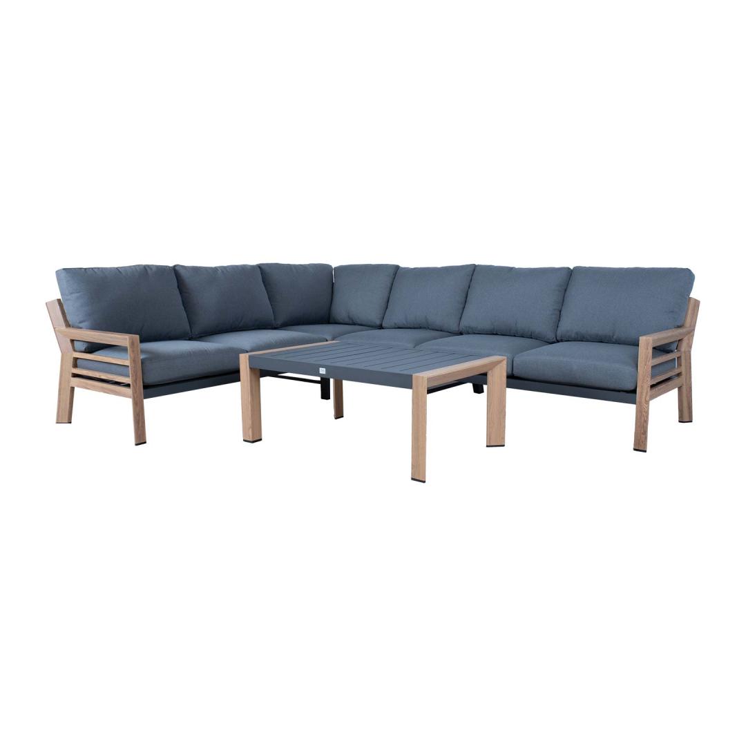 Aiamööblikomplekt TOMSON laud ja nurgadiivan, tiik/hall