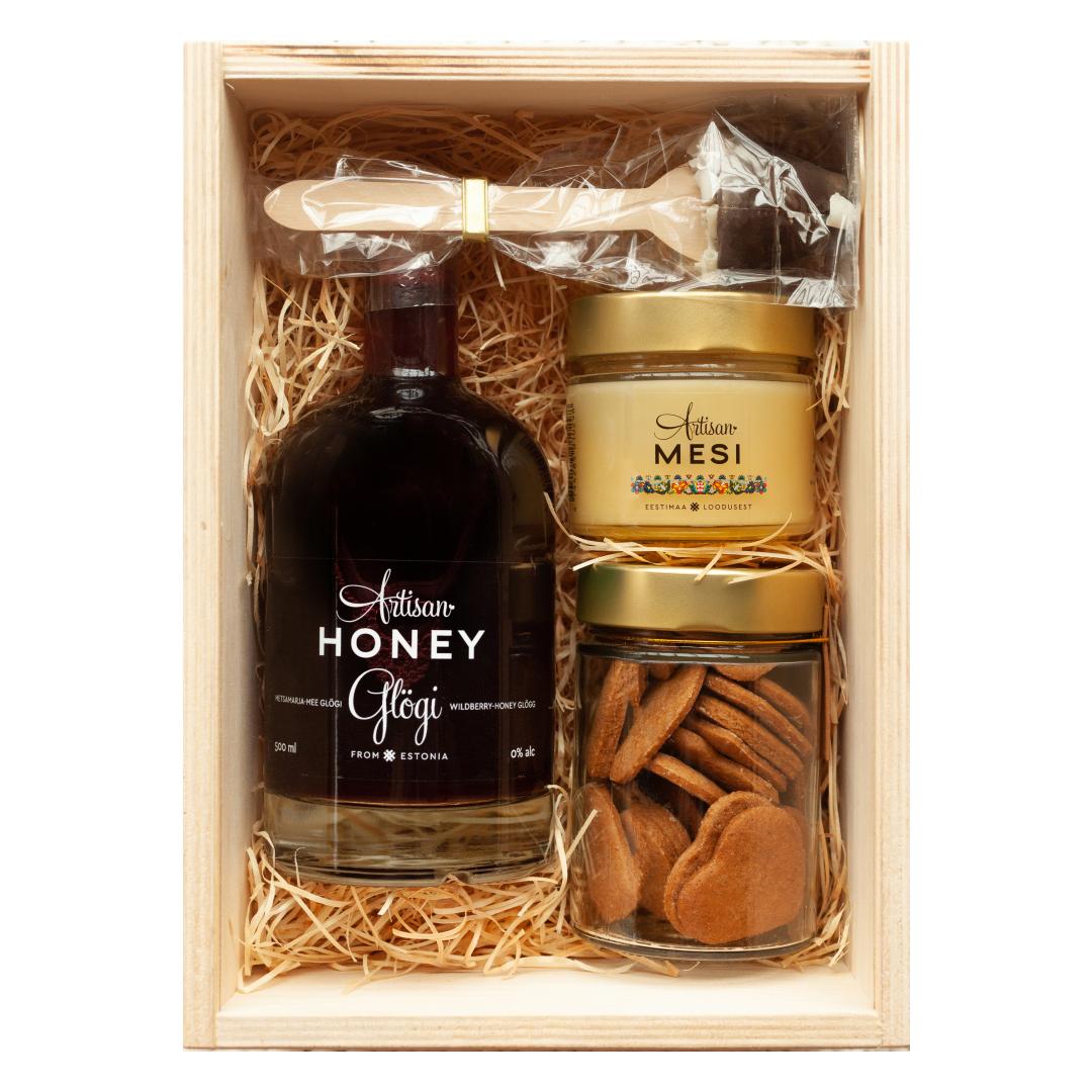 Artisan Honey komplekt puidust kinkekarbis: Metsamarja ja mee glögi 500 ml (alkoholivaba)