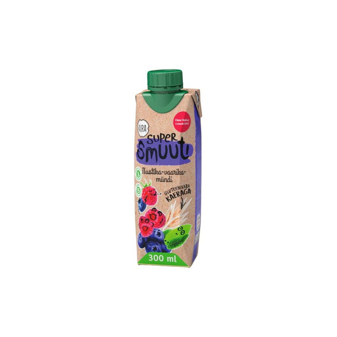 Õunapüree (30%); õunamahl kontsentreeritud mahlast (29%); banaanipüree (20%); mahemustikapüree (8%); aroonia- (5%), vaarika- (4%) ja sidrunimahl (2%) kontsentreeritud mahladest; vesi; kaer (0,4%); mündiekstrakt (0,01%); lõhna- ja maitseained; vitamiinid (pantoteenhape, vitamiin B6, biotiin, vitamiin B12). Puuviljasisaldus 98% Kuninglik kombo ehk mustikas ja vaarikas on saanud kokku suviselt mahlases smuutis ning värskendavaks kaaslaseks on nende kõrval münt. Smuutisse on lisatud kaera, et maitsev vahepala veelgi paremini kõhtu täidaks. Mustika-vaarika-mündi Aura Supersmuuti sisaldab ka kasulikke B-rühma vitamiine. Aura Supersmuuti on valmistatud ainult täiuslikult küpsenud puuviljadest ja sinna ei ole lisatud suhkrut ega säilitusaineid.