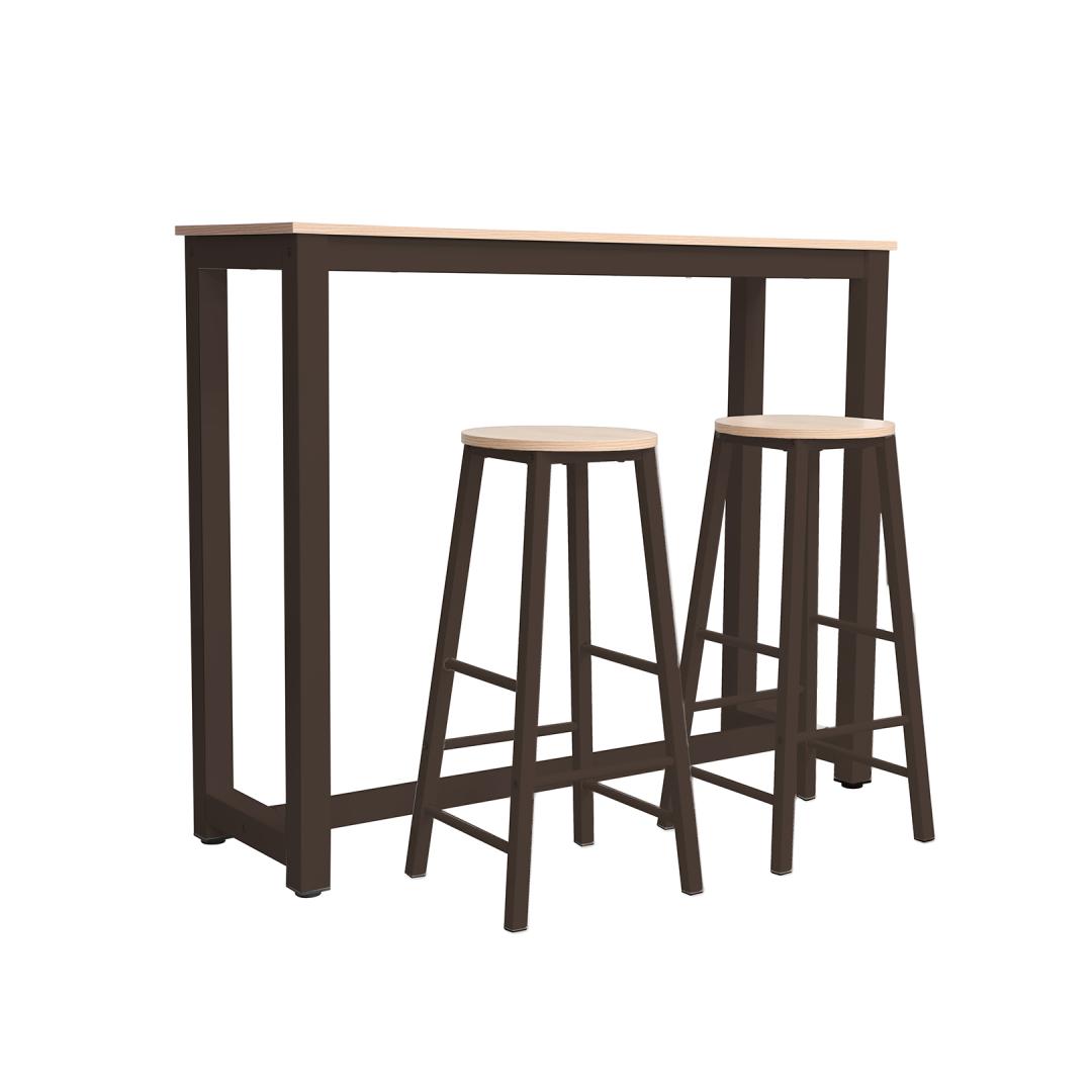 Baarikomplekt SANCIA laud ja 2 baaripukki, tamm/pruun.