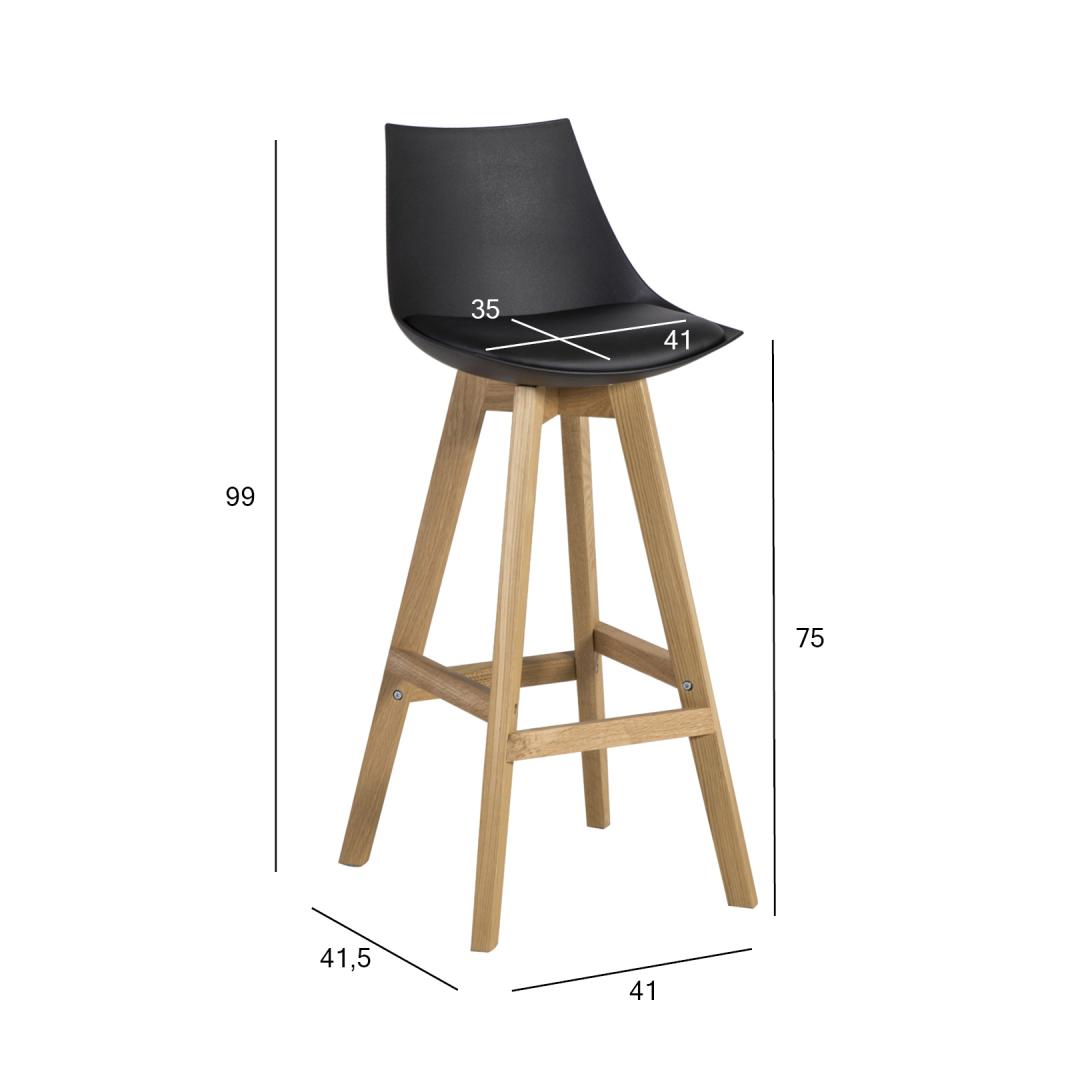 Baaripukk SONJA, must. Mugava vormiga plastikust iste. Polsterdatud istmepõhi on kaetud kunstnahaga. Heledad tammepuidust jalad. Üldmõõdud 41x41,5xH99cm. Istme kõrgus 75cm, istme laius 41cm, istme sügavus 35cm, seljatoe kõrgus 25,5cm. Kaalupiirang: 100kg. Baaripukk SONJA, must. Mugava vormiga plastikust iste. Polsterdatud istmepõhi on kaetud kunstnahaga. Heledad tammepuidust jalad. Üldmõõdud 41x41,5xH99cm. Istme kõrgus 75cm, istme laius 41cm, istme sügavus 35cm, seljatoe kõrgus 25,5cm. Kaalupiirang: 100kg.