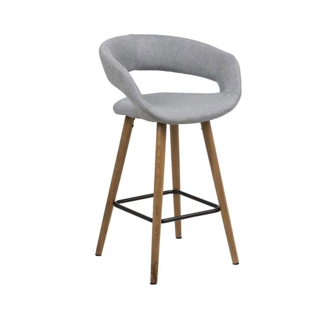 Baaritool madal GRACE 55x46,5xH98cm, iste ja seljatugi: kangas, värvus: helehall, jalad: tamm, viimistlus: õlitatud