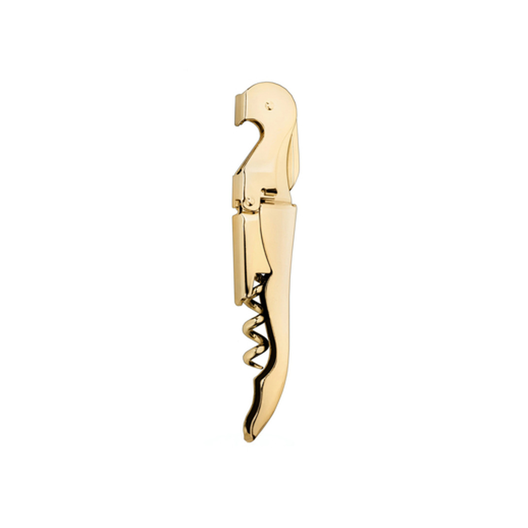 Kuldseks pinnatud roostevabast terasest avaja, mis on varustatud ka väikese noa, korgitseri ja kroonkorgiavajaga.