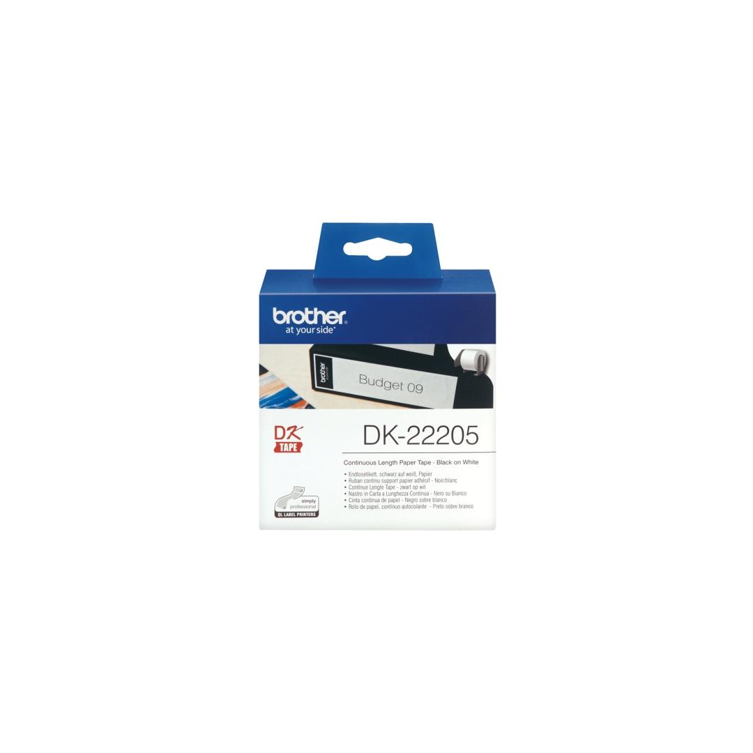 Brother DK-22205 (DK22205) Continuous Paper Label Roll, Black on White, 62mm, 30.48m