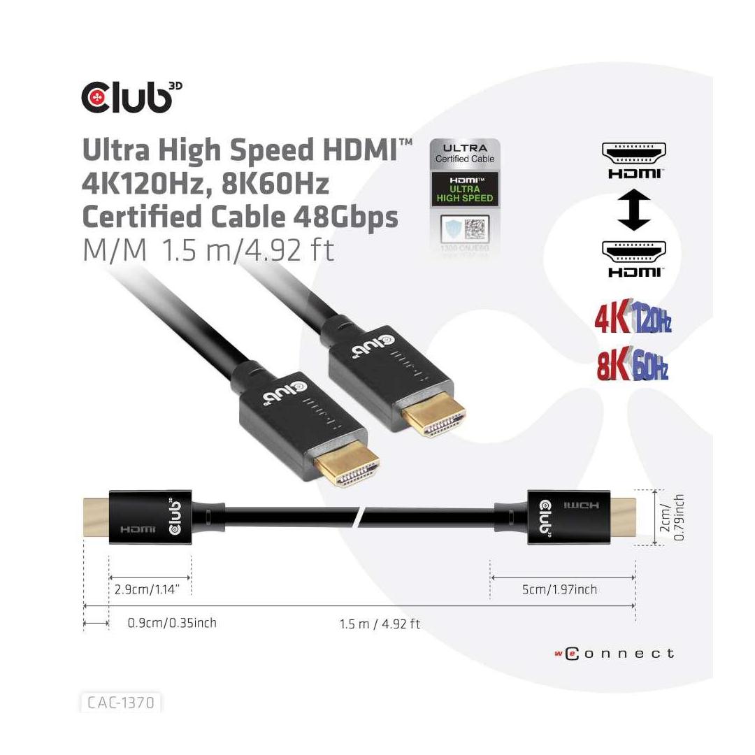 CABLE HDMI TO HDMI 1.5M/M/M CAC-1370 CLUB3D