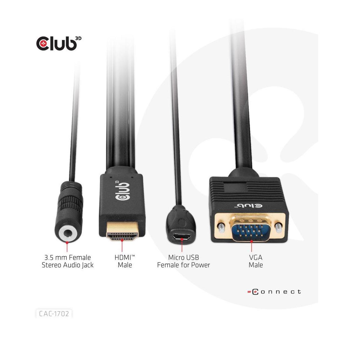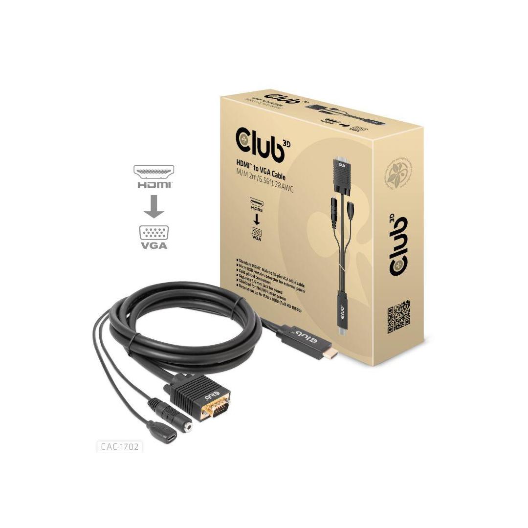 CABLE HDMI TO VGA 2M/M/M CAC-1712 CLUB3D